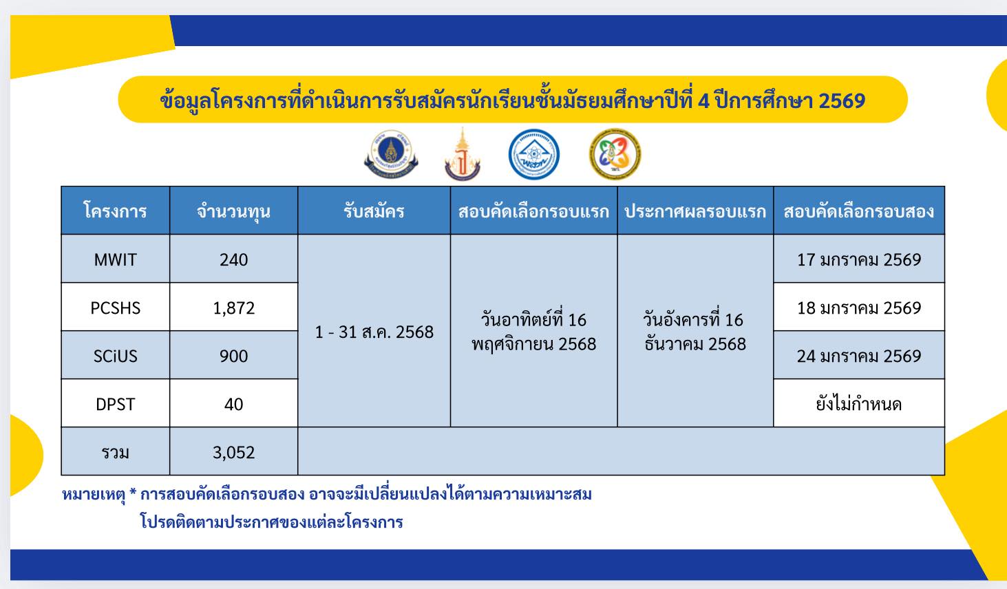 ใครที่สอบติดจะได้ ทุนการศึกษาเต็มจำนวน ครอบคลุมทั้งค่าเรียน ที่พัก อาหาร และการวิจัย เป้าหมายของโรงเรียนคือการสร้างฐานนักวิทยาศาสตร์และนักวิจัยของประเทศครับ เน้นการเรียนรู้ผ่านการทำโครงงานและการปฏิบัติจริง