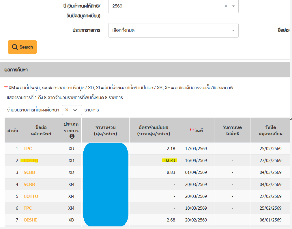 (ข่าวหุ้น COTTO) ใน TSD อัพเดทสถานะ XD แล้วค่ะ