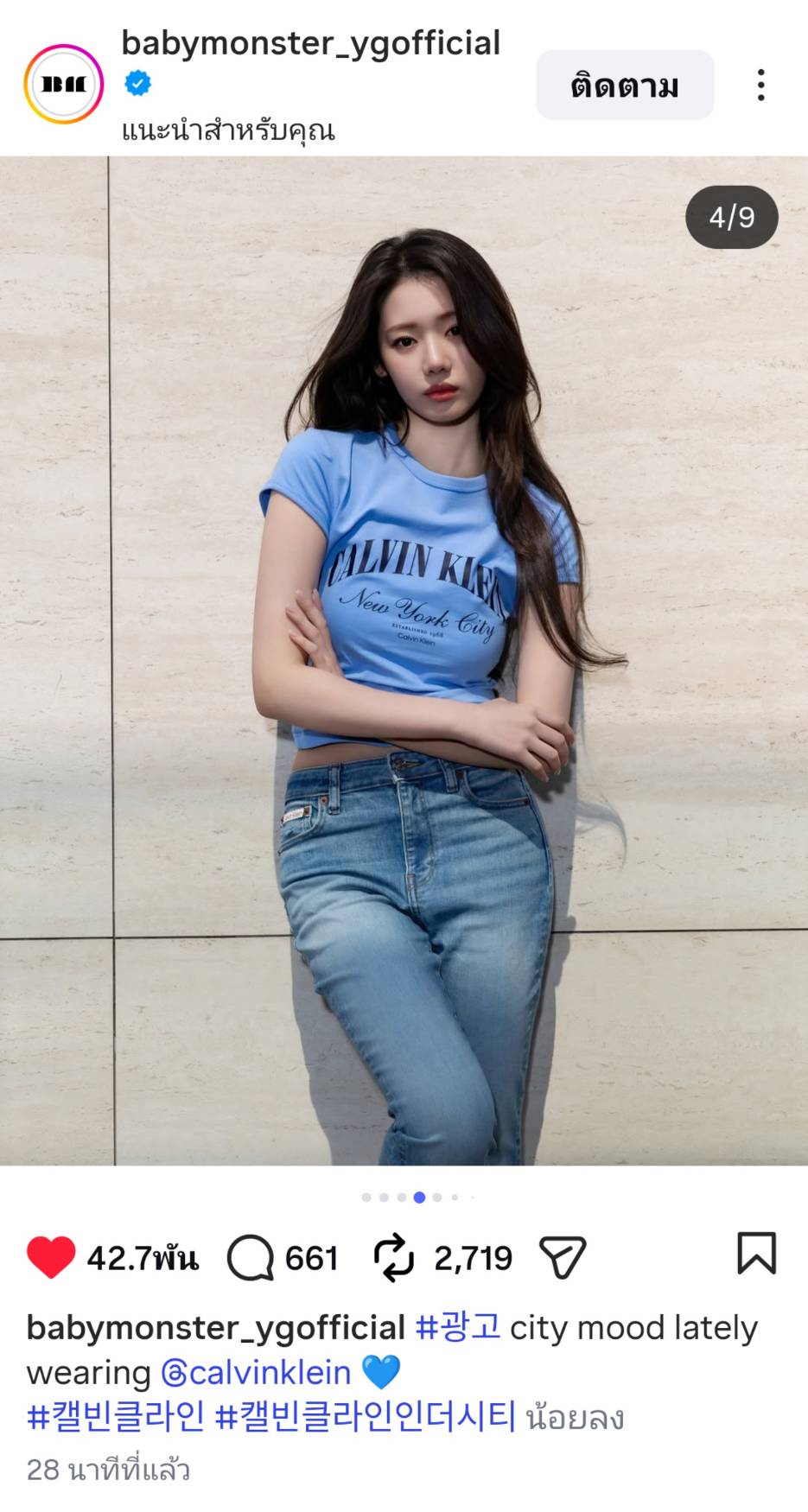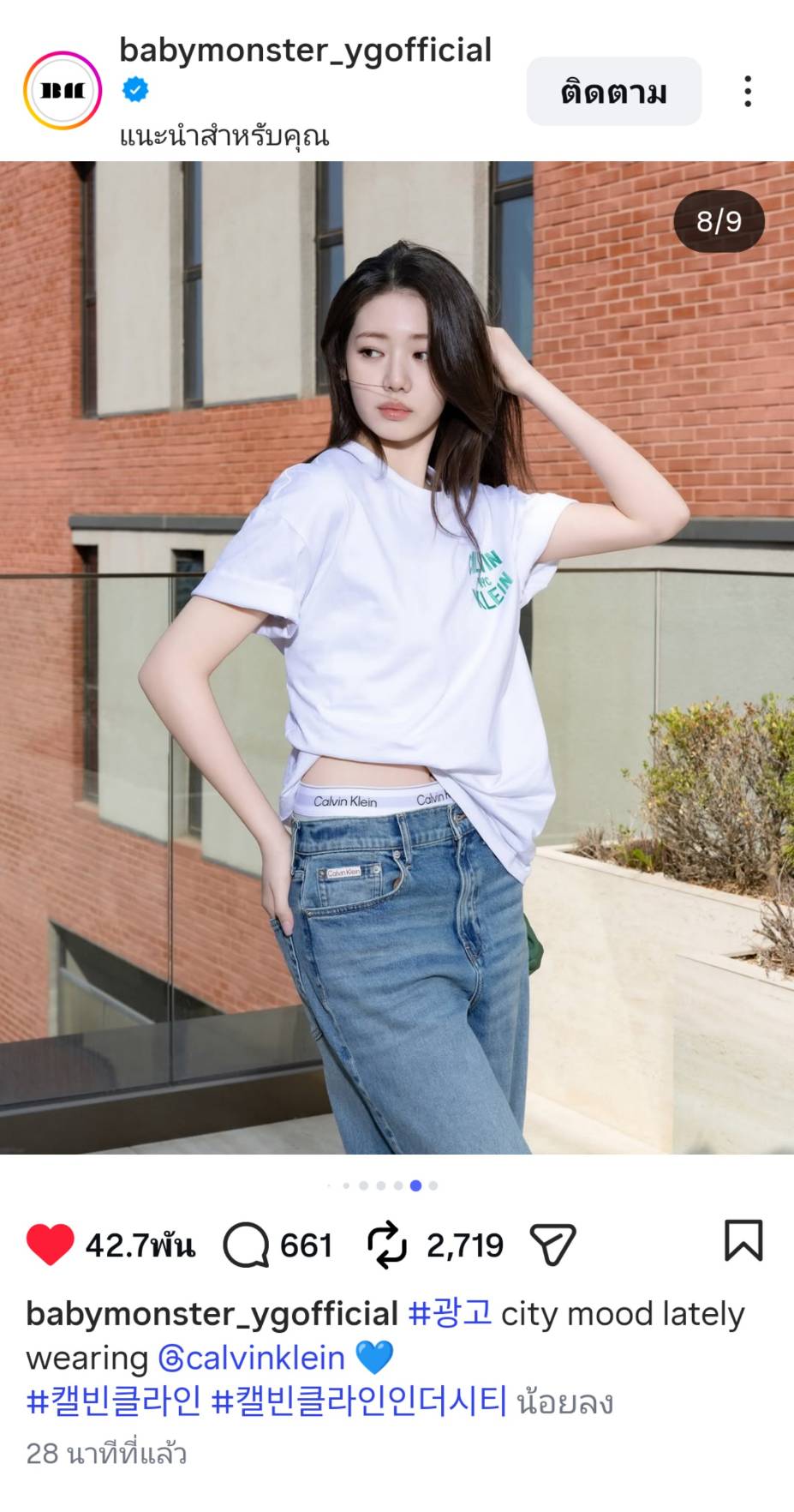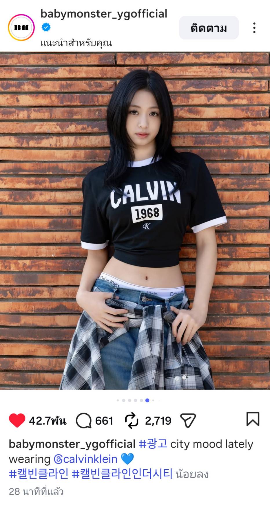 ทางการของ BABYMONSTER ได้ลงรูปของ AHYEON กับ RORA ใส่เครื่องแต่งกายของ Calvin Klein พร้อมใส่แท็ก Calvin Klein Official ด้วย