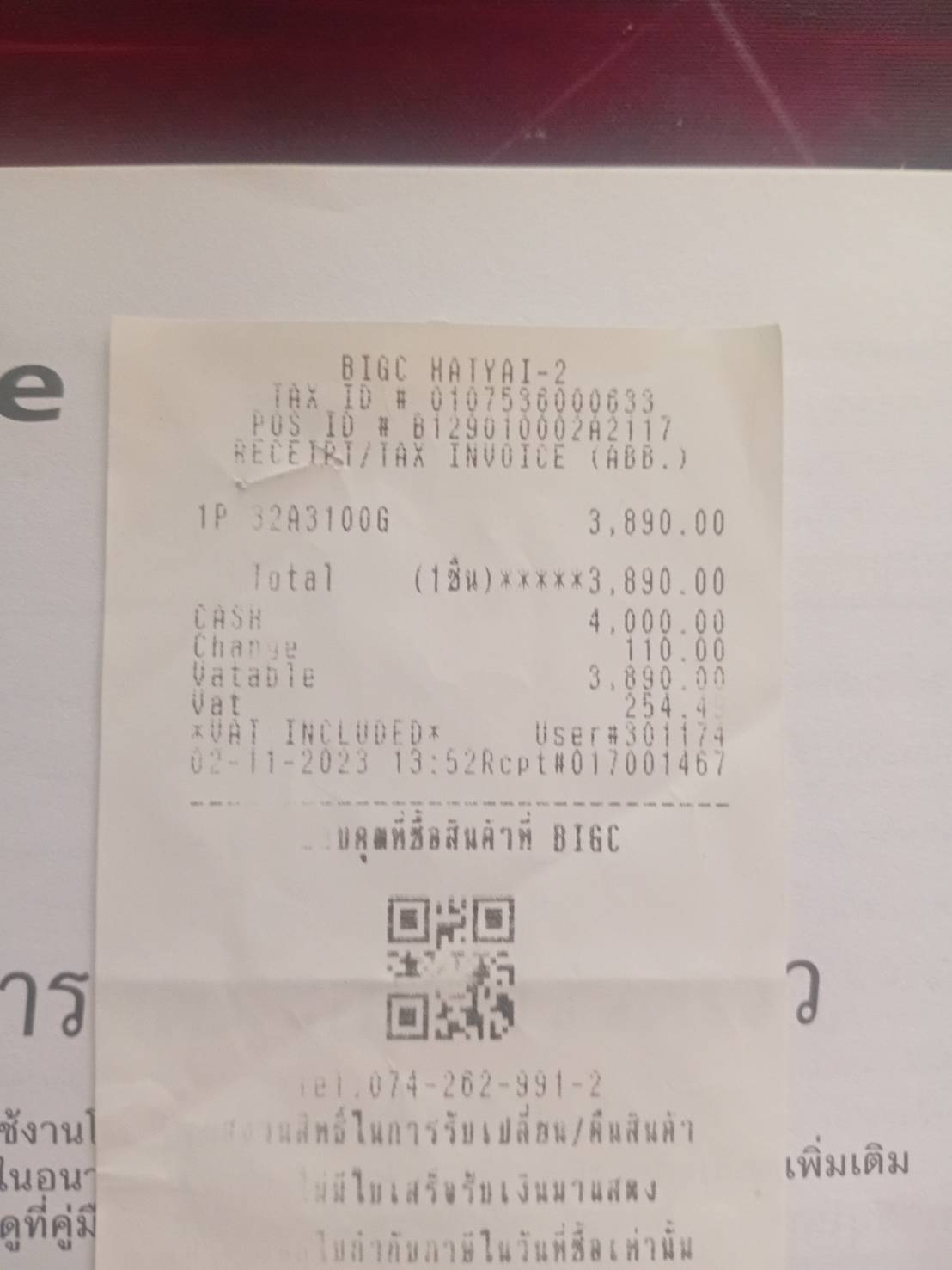 ใบเสร็จบิ๊กซี่ ที่ระบุนี้ เป็นวันที่ 2 พ.ย. หรือวันที่ 11 ก.พ. ครับ
