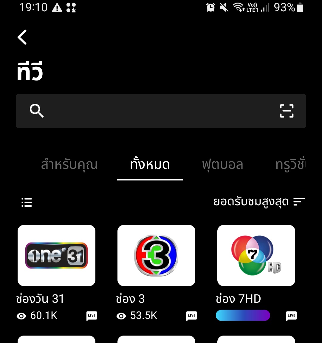6 ช่องฟรีทีวียอดนิยม บน TrueID TV ประจำวันพฤหัสบดีที่ 19 มีนาคม 2569 เวลา 19:22 น. อันดับ 1 one31 HD ละคร พลอยน้ำเพชร ยอดคนดู 54.5K อันดับ 2 3HD ละคร ปิ่นอนงค์ ยอดคนดู 49.6K อันดับ 3 7HD ละคร เลดี้ทุ