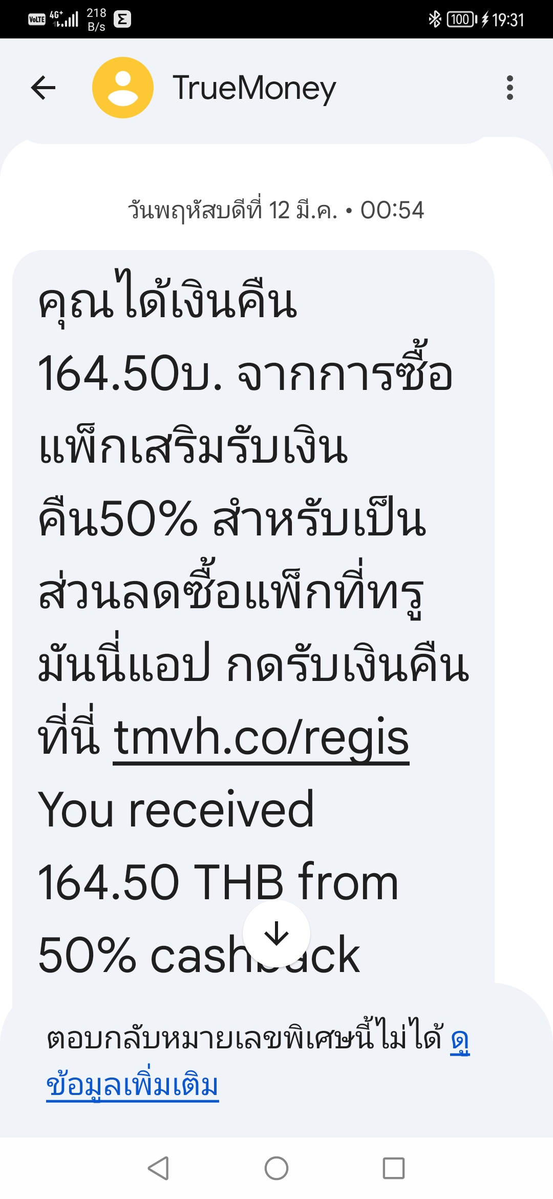 มีข้อความจาก TrueMoney ส่งมาว่าได้เงินคืน ลิงค์ที่ส่งมาเป็นของจริงไหมกลัวเป็นมิจฉาชีพกดได้จริงหรือเปล่า