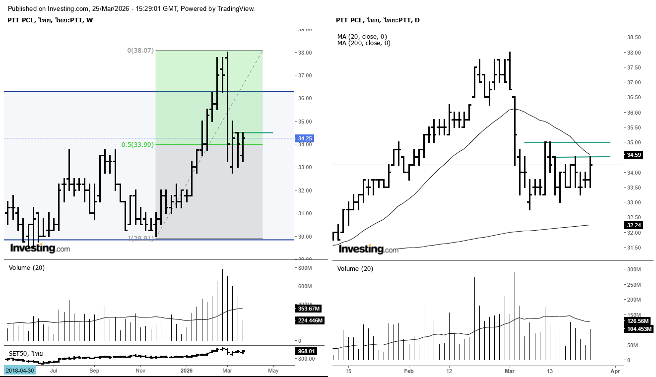 3. ระยะสั้น D - ติดแนวต้าน 2 แนว คือ 34.50 และ 35 -- เส้น 20 วัน กดลง -- วอลลุ่ม ก็ไม่โดดเด่น
