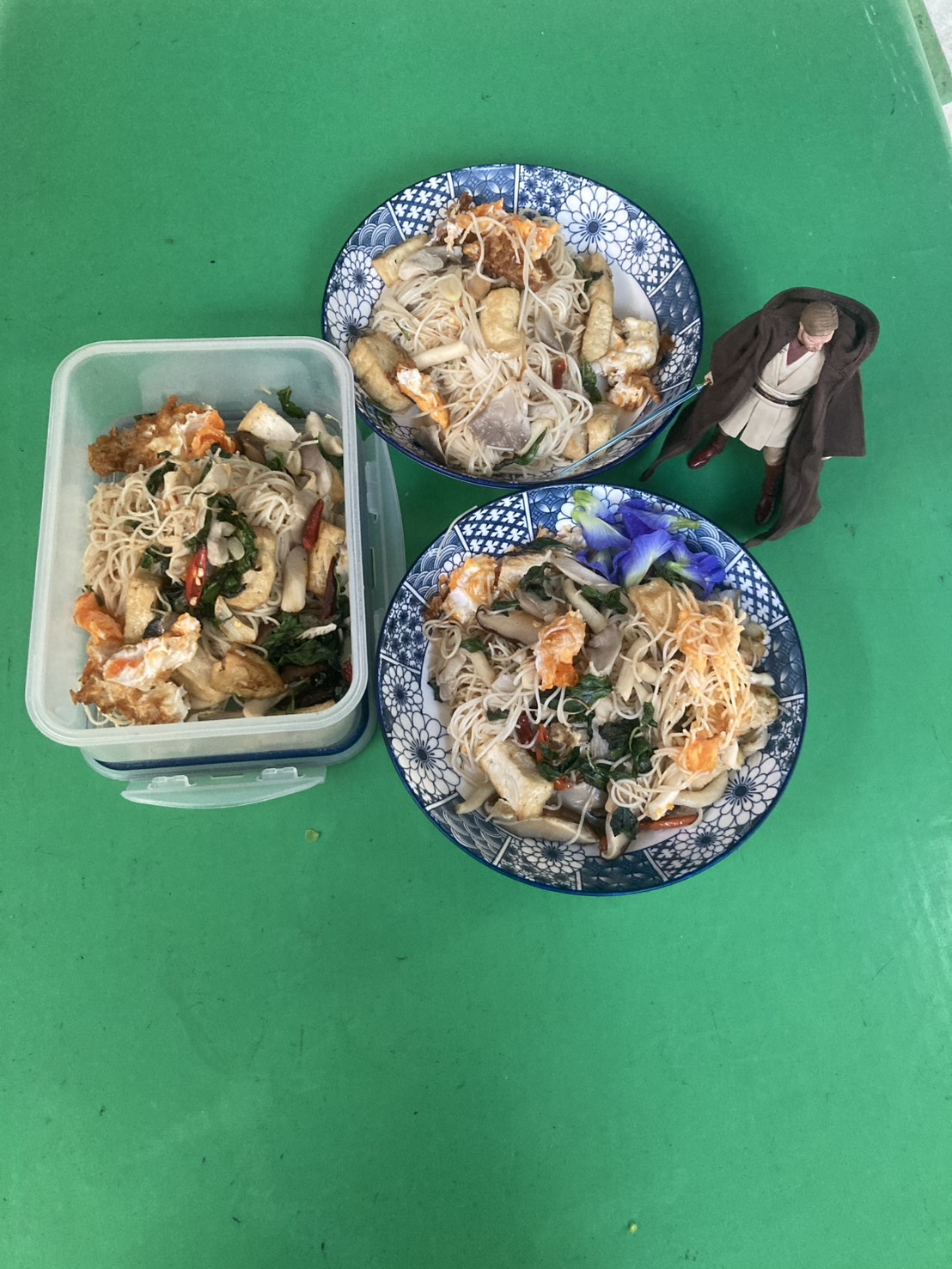 เป็นเส้นหมี่ฮ่องกงแทน อร่อยไปอีกแบบเพราะที่บ้านเป็นเด็กเส้นกันอยู่ ชอบกินเส้นทุกชนิด ผัดแบบแห้งๆใส่เต้าหู้ เห็ดหอมกับเห็ดนางฟ้า