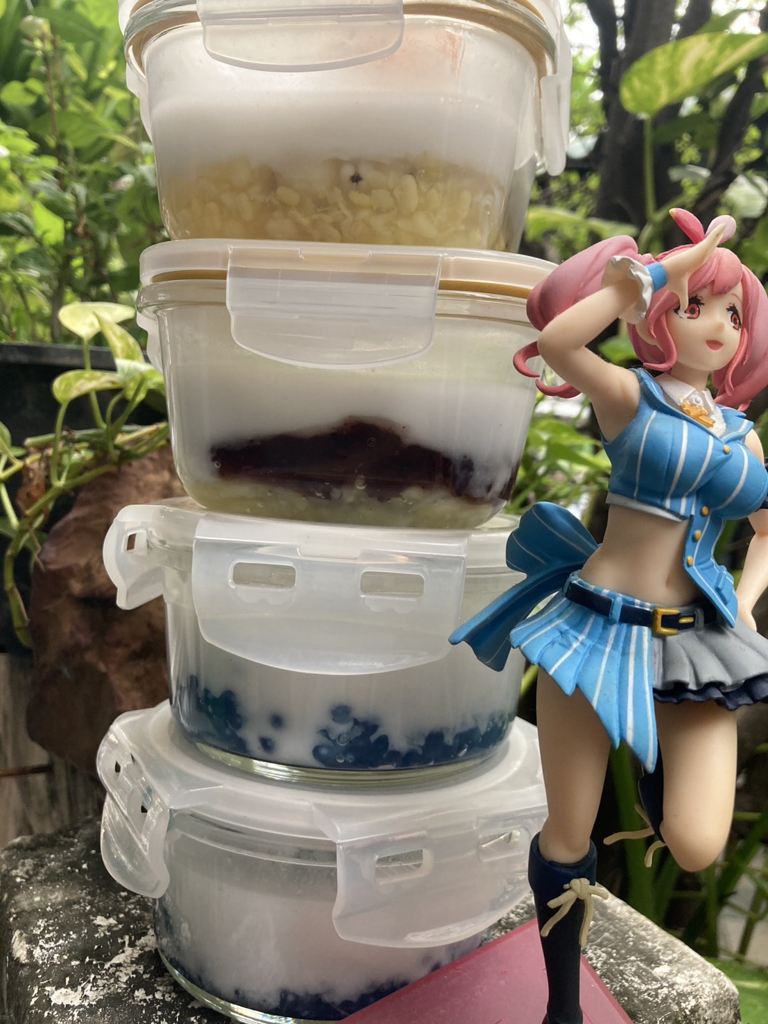 แวะร้านขนมเจ้าโปรด เอากล่องแก้วติดไปด้วยเพราะรู้อยู่แล้วว่าจะซื้อขนม วันนี้มีของชอบคือสาคูเปียกอัญชันลำไย จัดมา 2