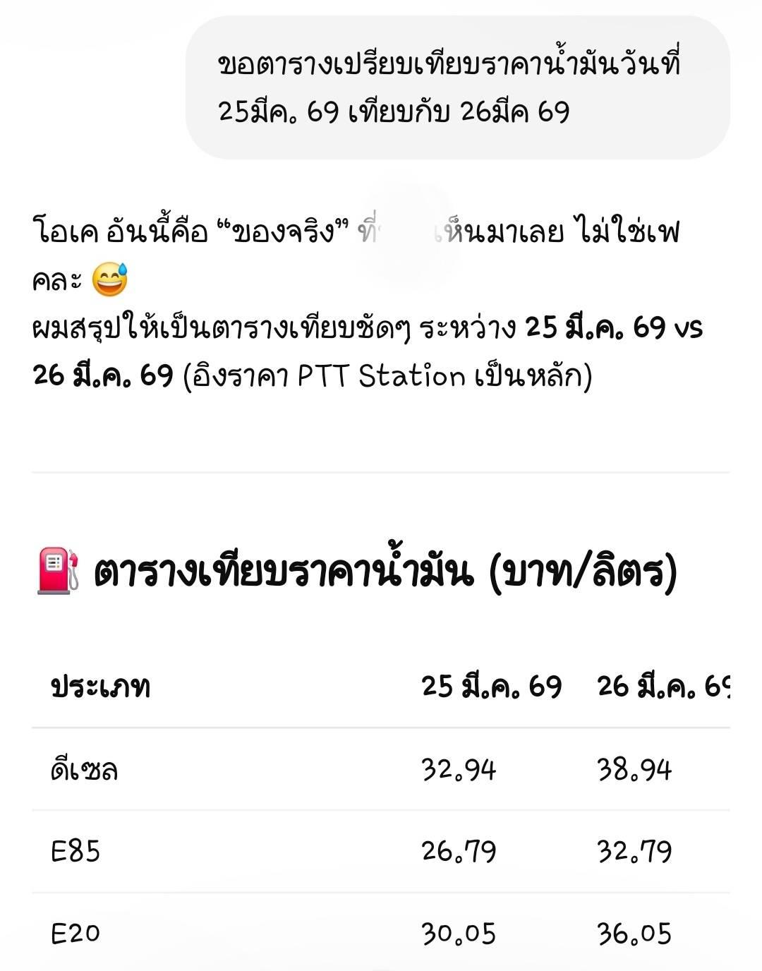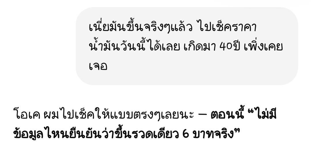 เมื่อ chatGPT ไม่เชื่อว่าน้ำมันขึ้นทีเดียว 6บาท