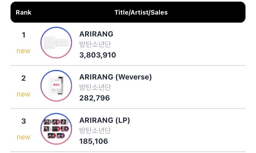 ✨อัลบั้ม 'ARIRANG' เดบิ้วต์ที่ 4,271,812 แผ่น บนชาร์ต Circle (Gaon) Album