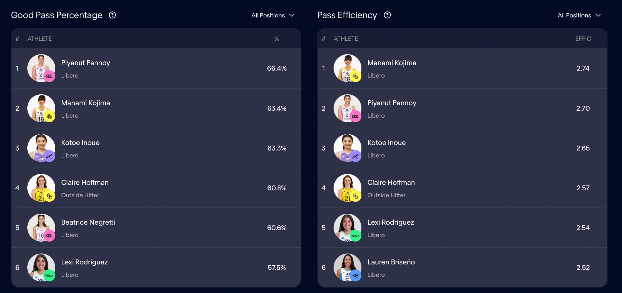 ปังมากก ควีนแป้นยืนหนึ่งรับบอลแรกในLOVB 2025-26 มากกว่าโคจิมะ4.8%