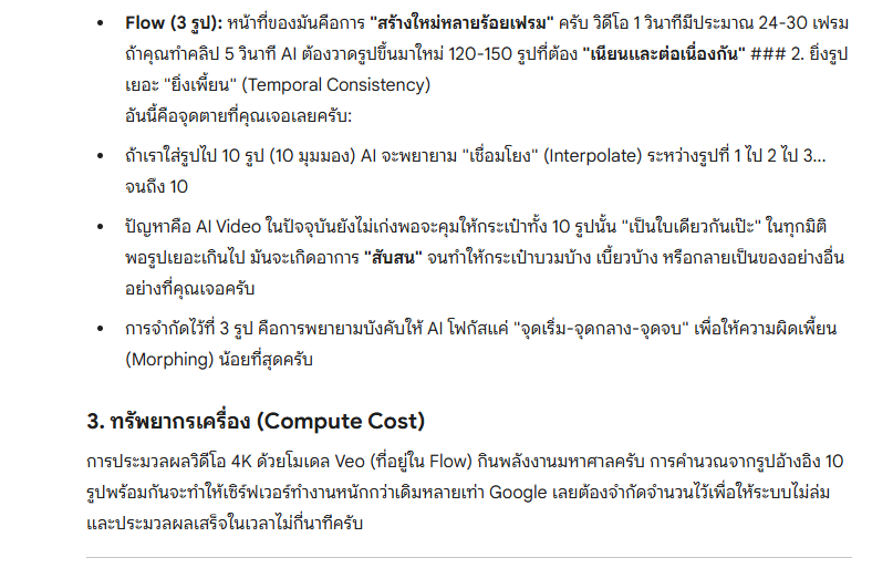 นอกจากนี้ ผมก็เพิ่งได้รูปว่า Flow ใช้รูปเอาไปลงในเฟรมเพื่อสร้างคลิปได้ไม่เกิน 3 รูป เลยเอาไปถาม gemini