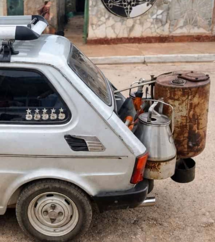 2 ภาพล่างนี้คือรถยนต์ของฮวน คาร์ลอส ปิโน ช่างเครื่องชาวคิวบาวัย 56 ปีได้ดัดแปลงรถยนต์ Fiat Polski รุ่นปี 1980 ให้สามารถใช้ "ถ่านไม้" เป็นเชื้อเพลิงได้