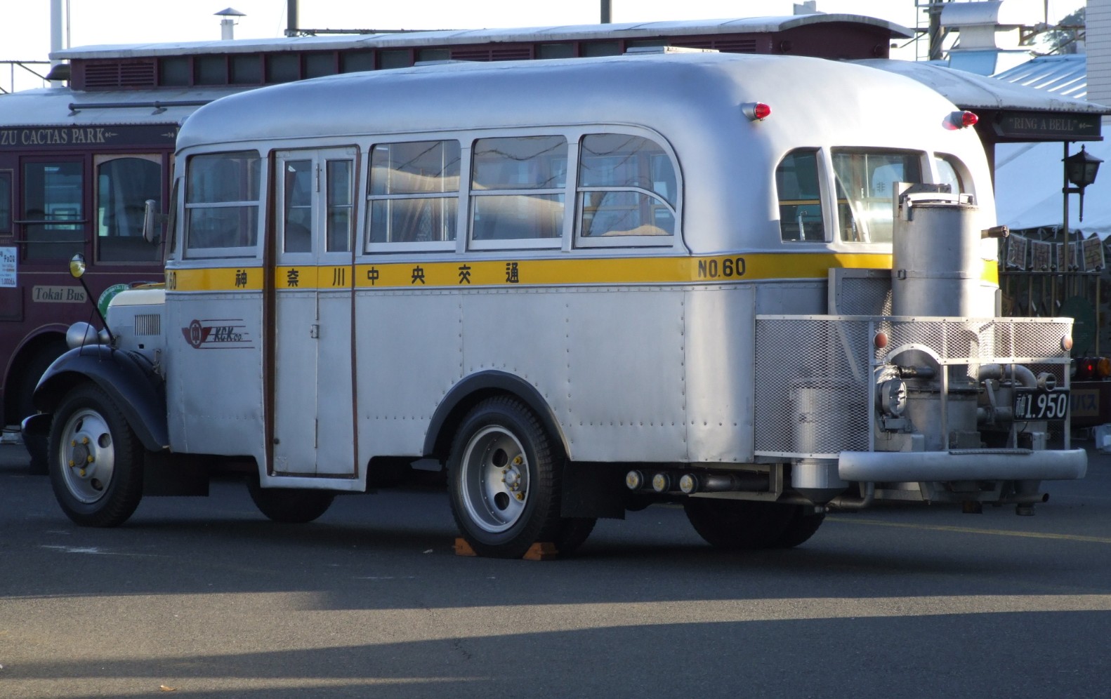 รถบัสที่มีเครื่องกำเนิดแก้สไม้ด้านหลัง เป็นรถของบริษัท Kanachu ซึ่งเป็นผู้ให้บริการรถบัสรายใหญ่ที่ครอบคลุมพื้นที่เกือบทั้งหมดของจังหวัดคานางาวะ ประเทศญี่ปุ่น