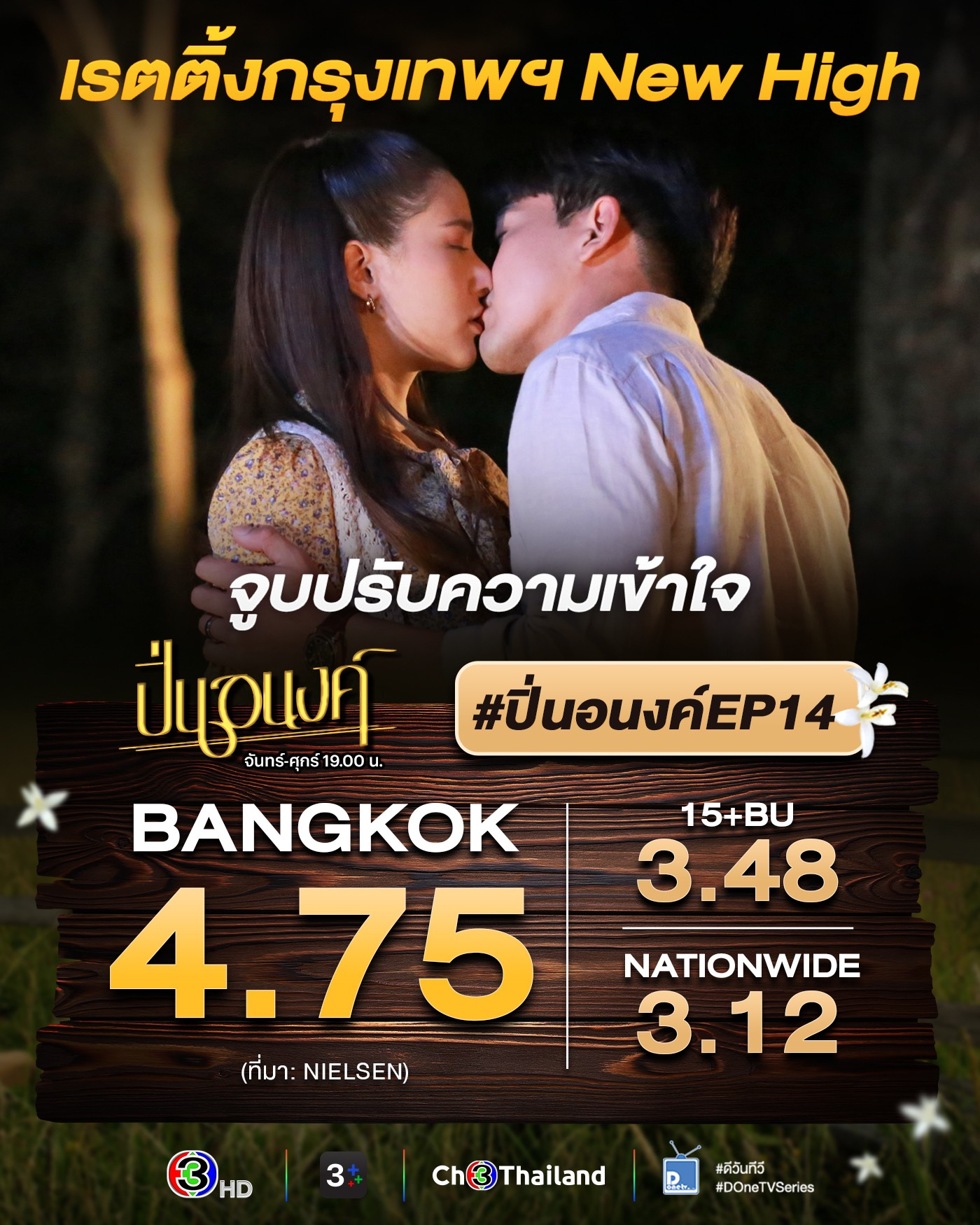 📌 เรตติ้งละคร “ปิ่นอนงค์” EP.14 จูบปรับความเข้าใจ 🥰 เรตติ้งทั่วประเทศ 3.12 / เรตติ้งกรุงเทพฯ 4.75 New High !!! 🎉
