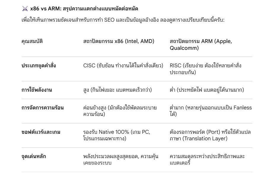 ⚔️ x86 vs ARM: สรุปความแตกต่างแบบหมัดต่อหมัด