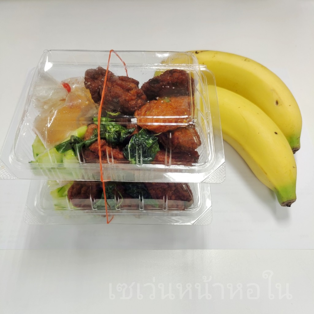 1 กล่อง มีทอดมันขนาดชิ้นพอดีคำ 8 ชิ้น แตงกวาและน้ำจิ้ม โรยใบกะเพราทอดมาหอมๆ