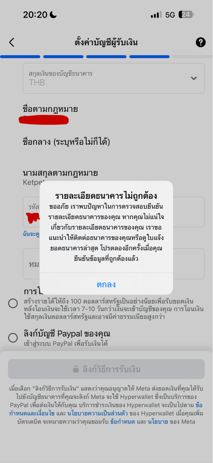 ทำไมตั้งค่ารับเงินไม่ได้จากเฟสบุ๊คพอกดแล้วมันขึ้นแบบในรูปมาก งงมาก