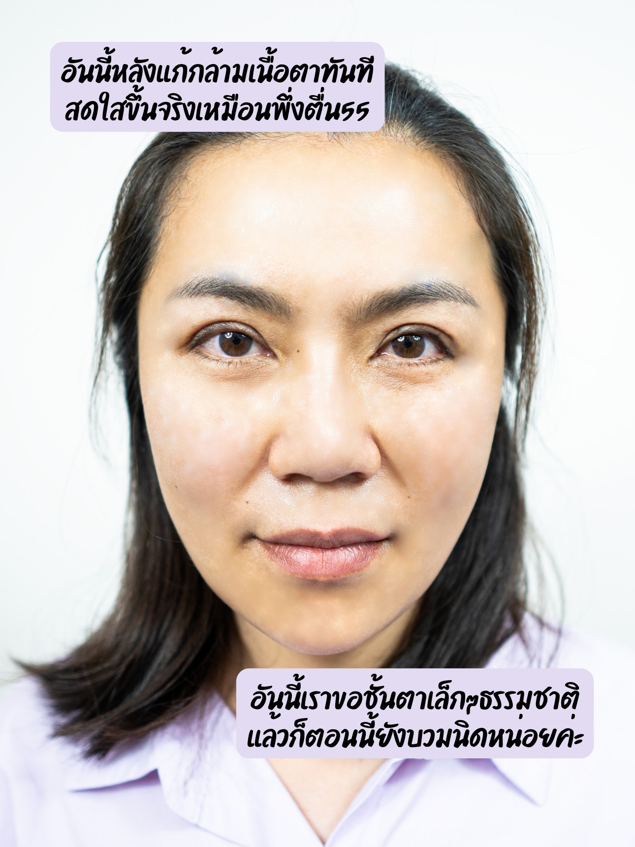 เราเทียบให้ดูในภาพก่อนและหลังทำ จะเห็นชัดว่ามันเหมือนเปิดม่านให้ตาอ่ะค่ะ555 แบบสดชื่น สดใส ตื่นมาแบบสดชื่นอย่างที่ไม่เคยเป็นมาก่อน แล้วมีแต่คนทักว่าสวยนะ ธรรมชาติ ไม่หอยแครงเลย