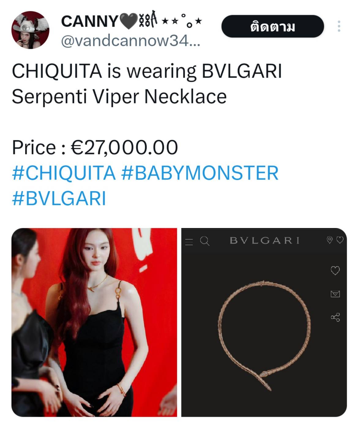 เริ่มจาก CHIQUITA อันนี้สร้อยคอ BVLGARI Serpenti Viper Necklace ราคาคิดเป็นเงินไทย 1,025,000 บาท