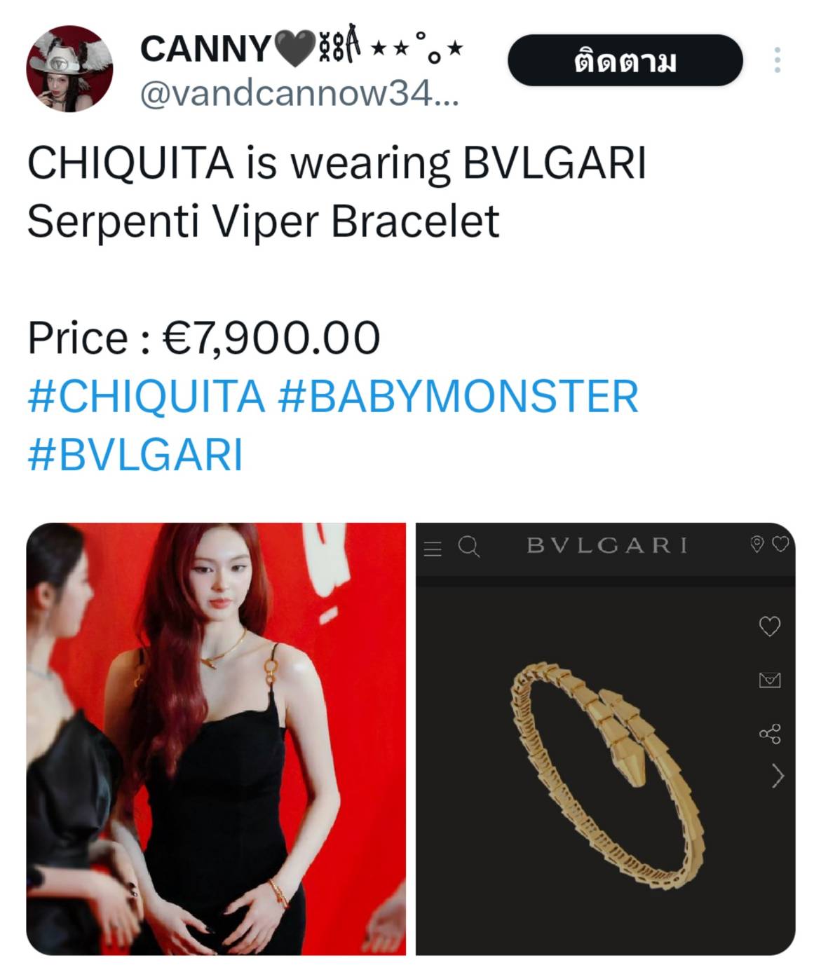 อันนี้ก็ CHIQUITA กำไลข้อมือ BVLGARI Serpenti Viper Bracelet ราคาคิดเป็นเงินไทย 368,000 บาท