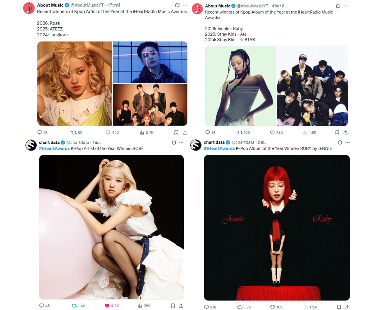 [กระทู้ยินดี] ROSÉ x JENNIE คว้ารางวัล iHeartRadio 2026 พร้อมกัน