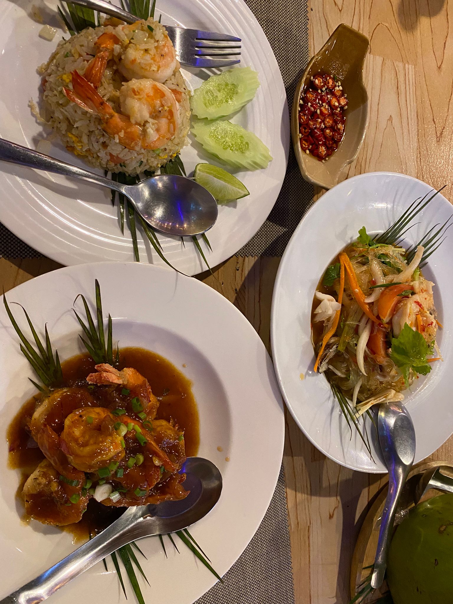 1 ร้านระเบียงเล ตรงท่าเรือ บ้านท่าเขา เราไป 1 ครั้งตอนค่ำ ๆ เป็นร้านอาหารไทย อาหารหน้าตาดีมาก ตกแต่งแบบไทย รสชาส แบบไทย จัดจ้าน พี่ผู้หญิงเต้าของร้านน่ารัก .... ต้อนรับแบบไทย ๆ ไกลจากโรงแรม แต่ ลูกค้าต่างชาติแน่นนะครับ