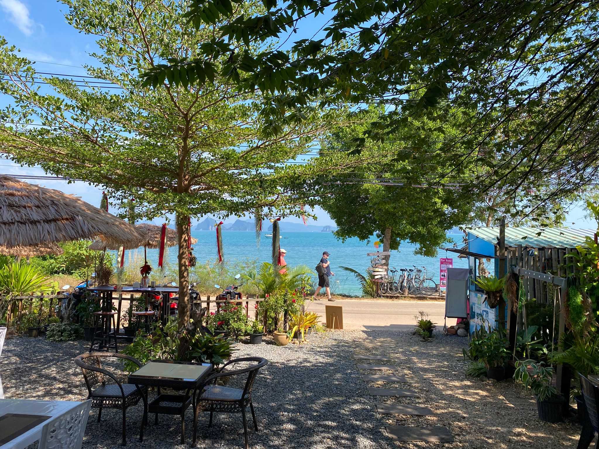 .... ตอนเช้า ๆ ก็มี 3-4 เช้า ปั่นจักรยานข้ามเขามาจากโรงแรม ชมบรรยกาศ งดงาม และมานั่งชม ชีวิตชุมชนยามเช้า ผมจะแวะร้านหนึ่งตรงท่าเรือนั่นแหละครับ... เป็นร้านข้าวแกง ผมมักซื้อ ขนมจีนน้ำยา ข้าวเหนียว ไก่ทอด ขนมไทย ขนมหวานภาคใต้ ท้องถิ่น ไปเป็นอาหารกลางวัน
