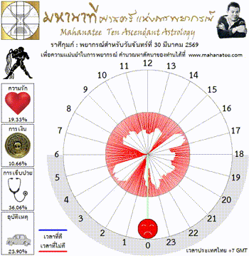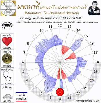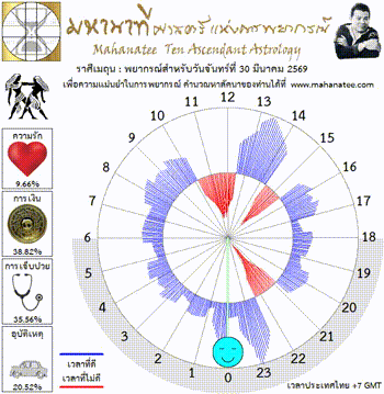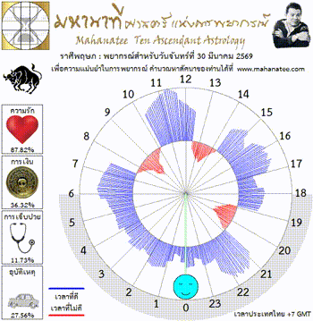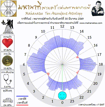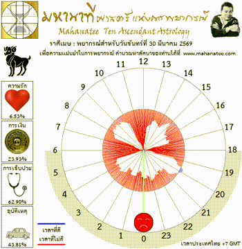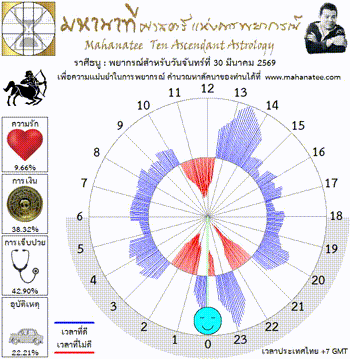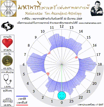 แผนภูมิและพยากรณ์ 12 ราศี สำหรับ วันจันทร์ที่ 30 มีนาคม 2569