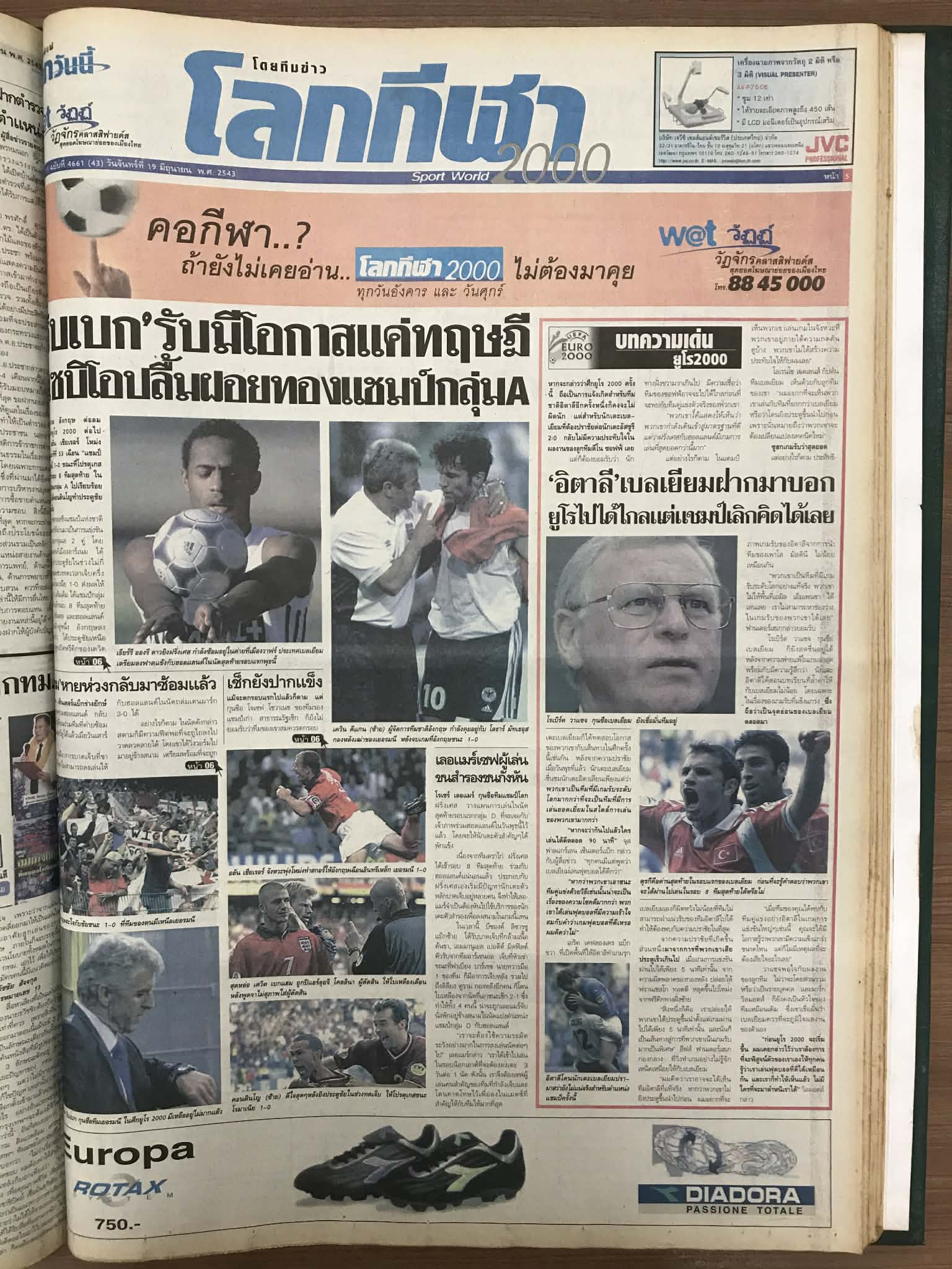 หน้าข่าวกีฬา “โลกวันนี้โลกกีฬา” เมื่อวันที่ 19 มิถุนายน พ.ศ. 2543
