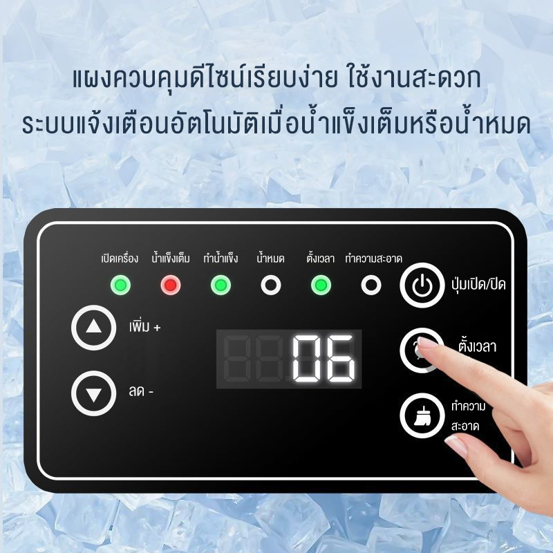 จากลักษณะการใช้งาน ตัวนี้เหมาะกับคนที่ต้องการความสะดวกและอยากลดภาระเรื่องการซื้อน้ำแข็งเข้าเพิ่มบ่อย ๆ เพราะมีจอแสดงผลและระบบตั้งเวลาเปิด-ปิดอัตโนมัติ ช่วยให้จัดการเวลาใช้งานได้ง่ายขึ้น ถ้าเป็นร้านเครื่องดื่มหรือธุรกิจขนาดเล็กที่ต้องใช้น้ำแข็งสม่ำเสมอ รุ่นนี้ตอบโจทย์ได้ดี ส่วนบ้านที่มีการใช้งานบ่อยหรือชอบจัดปาร์ตี้ก็ใช้งานได้คุ้ม จุดเด่นของ เครื่องทำน้ำแข็งอัตโนมัติ รุ่นนี้คือได้ทั้งความเร็ว ความจุ และความทนทานในเครื่องเดียว 🧊