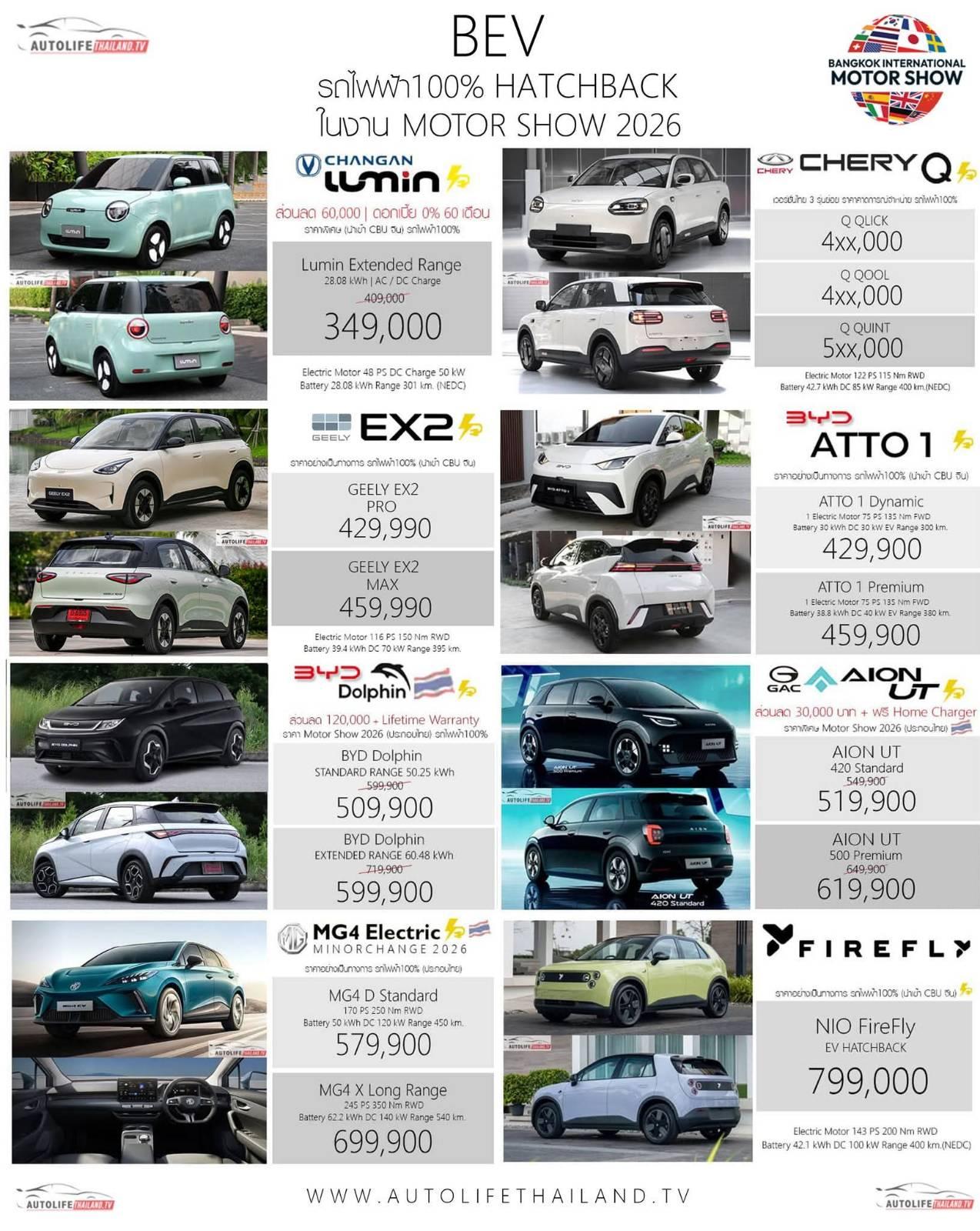รวมรถไฟฟ้า100% HATCHBACK EV ในงาน Motor Show 2026 ราคาเริ่มต้น : 349,000 - 799,000 บาท !!