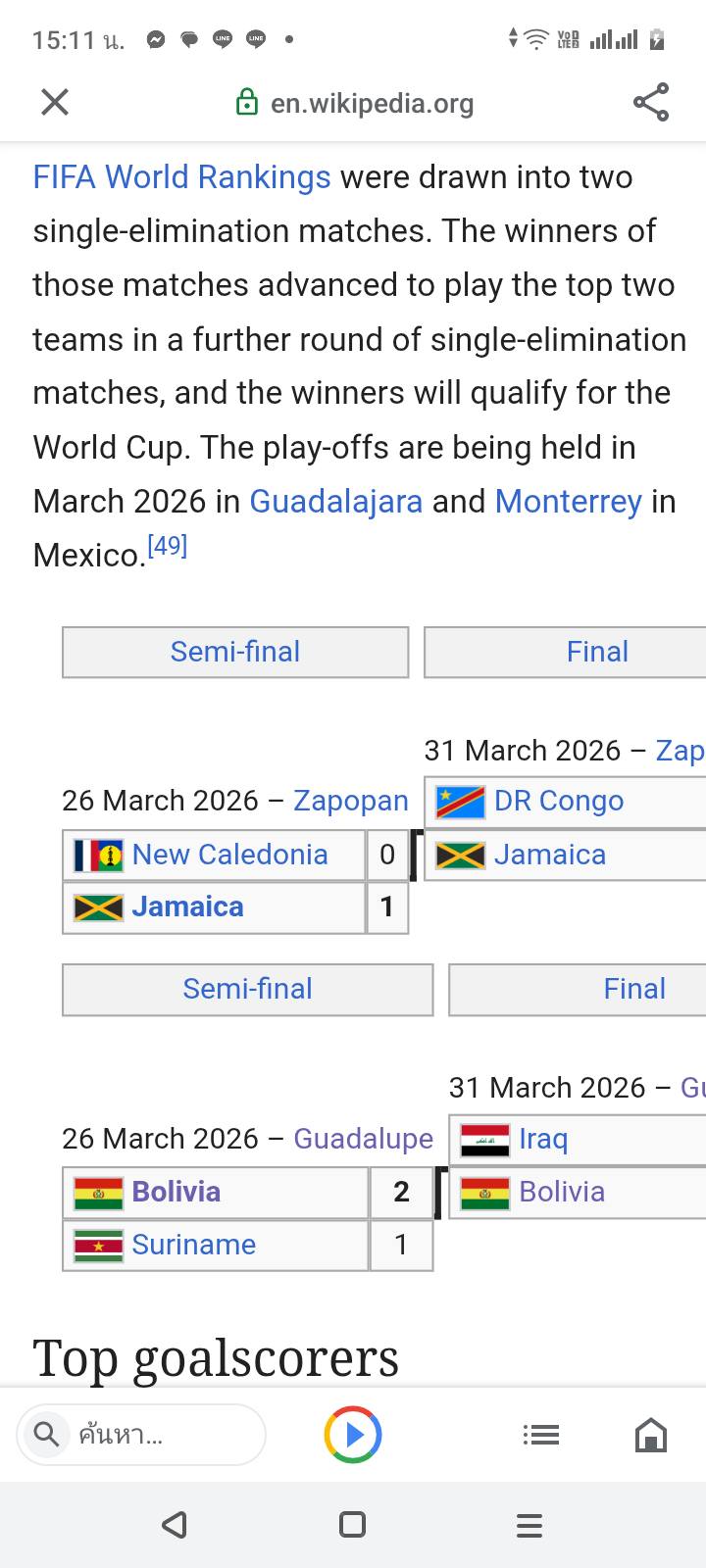 เหลืออีกเพียงนัดเดียวกับอิรัก โดยจะแข่งกันที่เม็กซิโก ในวันอังคารหน้า มาดูกันว่าระหว่างโบลิเวียกับอืรักใครจะได้ไปฟุตบอลโลก
