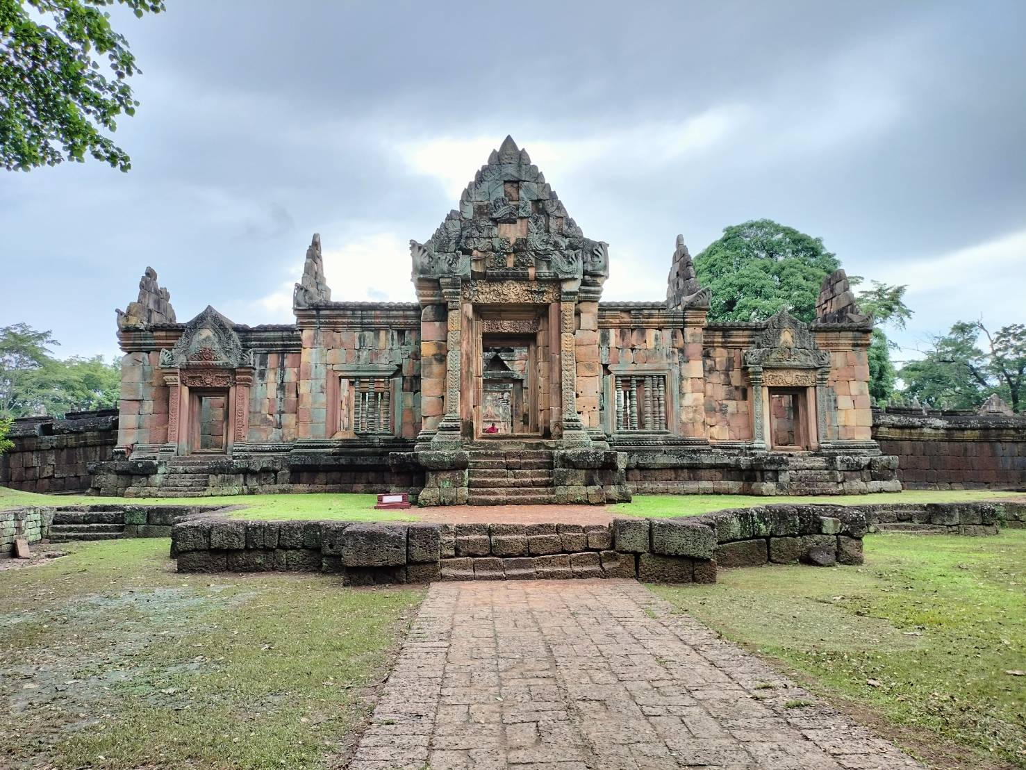 ตรงกลางเป็นปรางค์ 5 องค์ เรียงสวยมาก มุมถ่ายรูปคือปังทุกมุม 📸