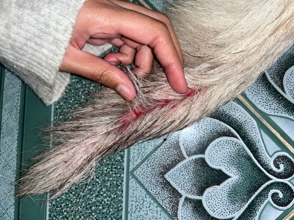 หมาโดนเคียวเกี่ยวไปโดนที่ปลายหางค่ะ เลือดไหลไม่หยุด ตอนนี้เอายางมามัดปลายหางแล้วพันแผลไว้เลือดหยุดไหลแล้วค่ะ แต่หมามีอาการชักเป็นบางช่วงเหมือนเสียเลือดเยอะ ต้องทำยังไงดีค่ะ อยู่ไกลจากคลีนิกมากค่ะ และไ