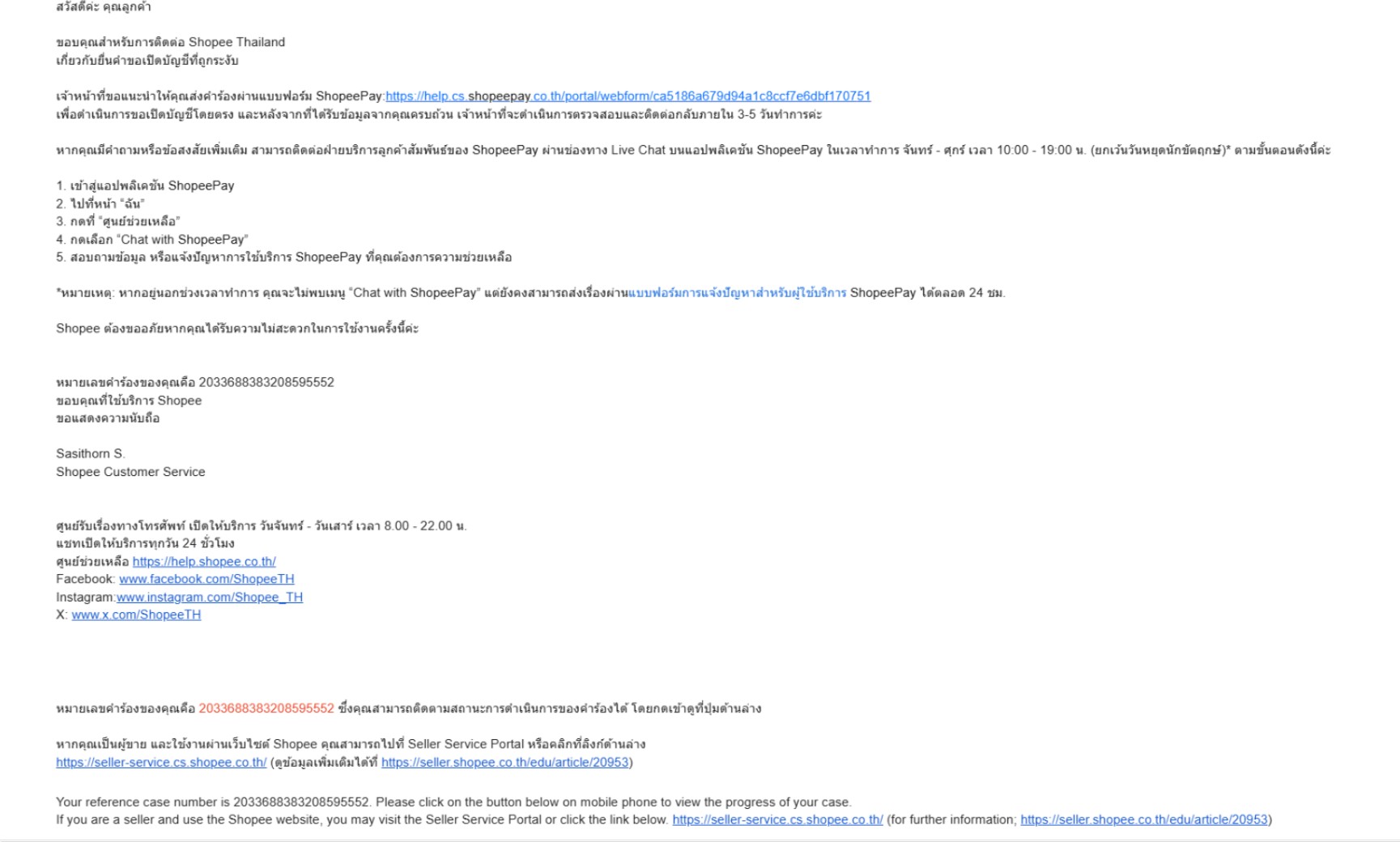 บัญชี shopee ถูกระงับ ไม่สามารถชำระหนี้ เงินกู้ และผ่อนสินค้าได้ ยื่นเรื่อง 20 วันหาวิธีแก้ไขไม่ได้
