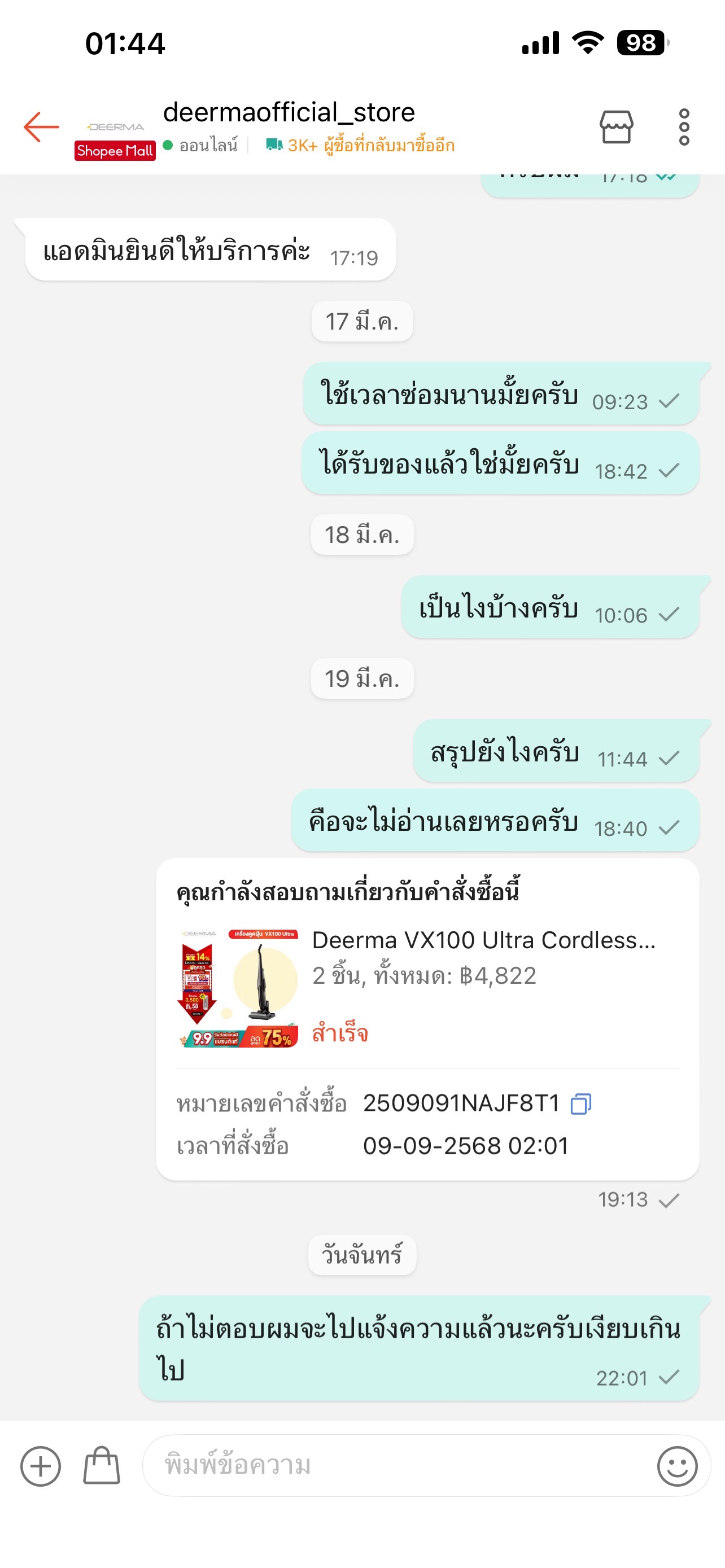 มีใครเคยใช้บริการสินค้าของ deerma บ้างคะ บริการหลังการขาย เป็นยังไง บ้างห่วยแบบเราไหม