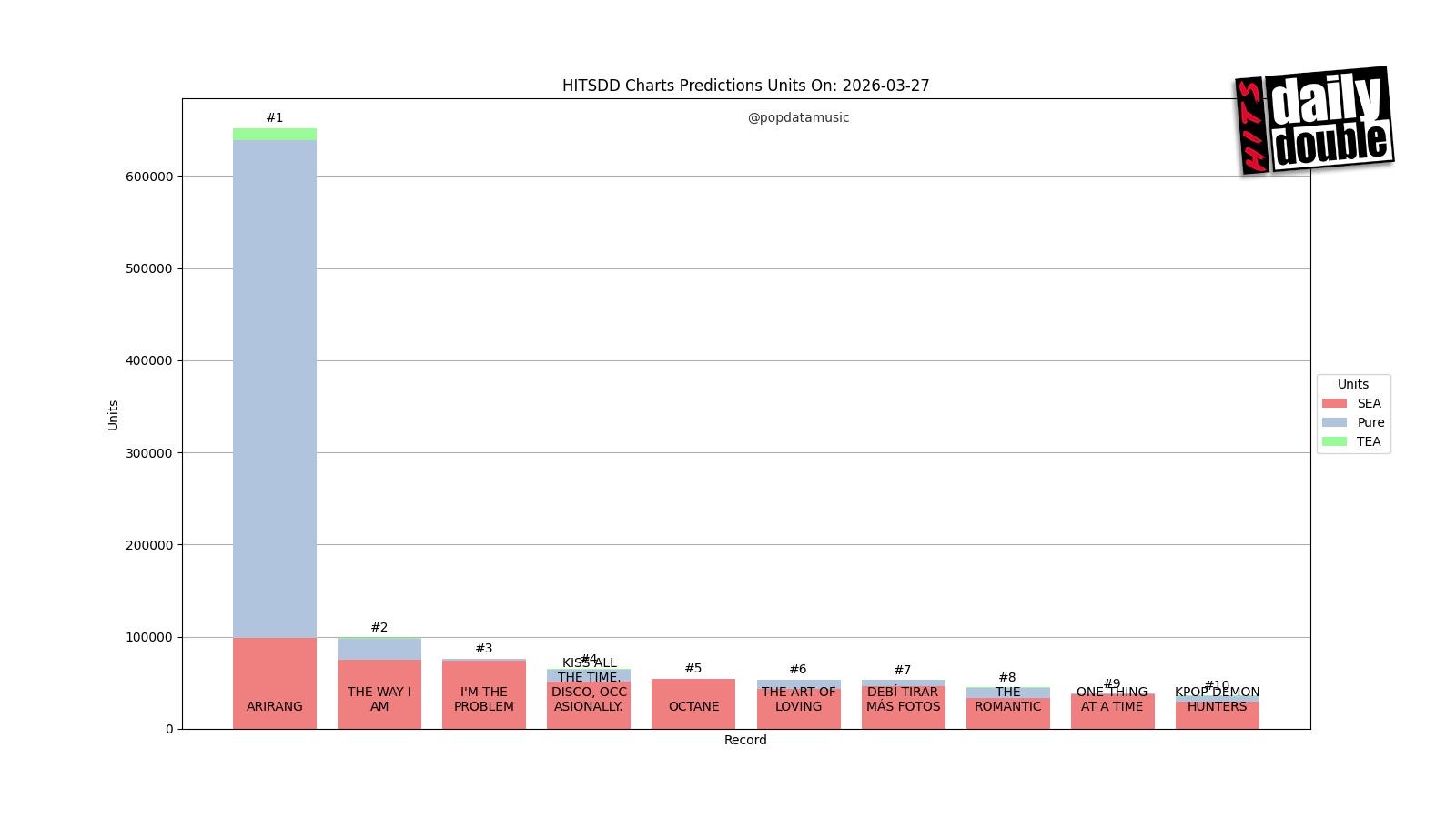 วง BTS วงดนตรีเคป็อปชื่อดังระดับโลกได้สร้างสถิติอัลบั้มเปิดตัวที่ยิ่งใหญ่ที่สุดแห่งปีด้วยอัลบั้ม ARIRANG ซึ่งทะยานขึ้นอันดับ 1 บนชาร์ต HITS Top 50 ด้วยยอดขายเกือบ 652,000 ชุดในสหรัฐอเมริกา เพลงต่าง ๆ จากอัลบั้มนี้ครองอันดับต้น ๆ บนแพลตฟอร์มดิจิทัลมาตั้งแต่เปิดตัว โดยเพลง “SWIM” และ “Body to Body” นำมา