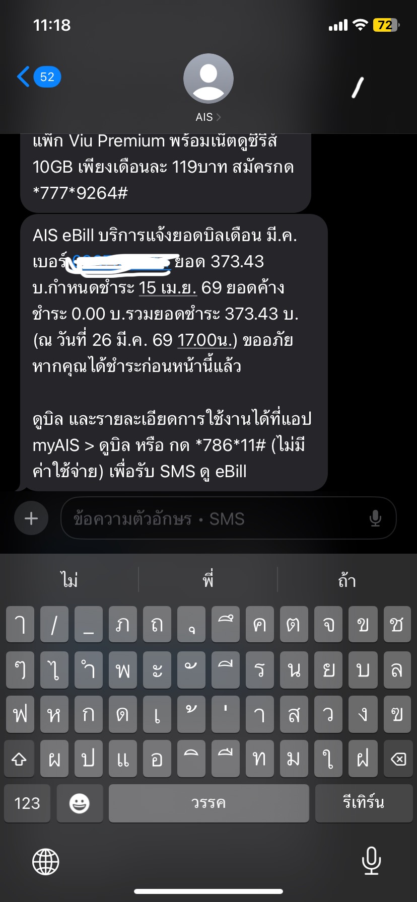 บิลais ค่าบริการเน็ตฟิกซ์ คิด2รอบใน1บิล