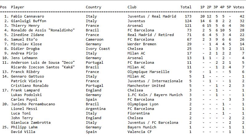 ส่วนผล "บัลลงดอร์ 2006" ก็ต่อท้าย เพราะปีนี้ไม่มีอะไรเป็นพิเศษ