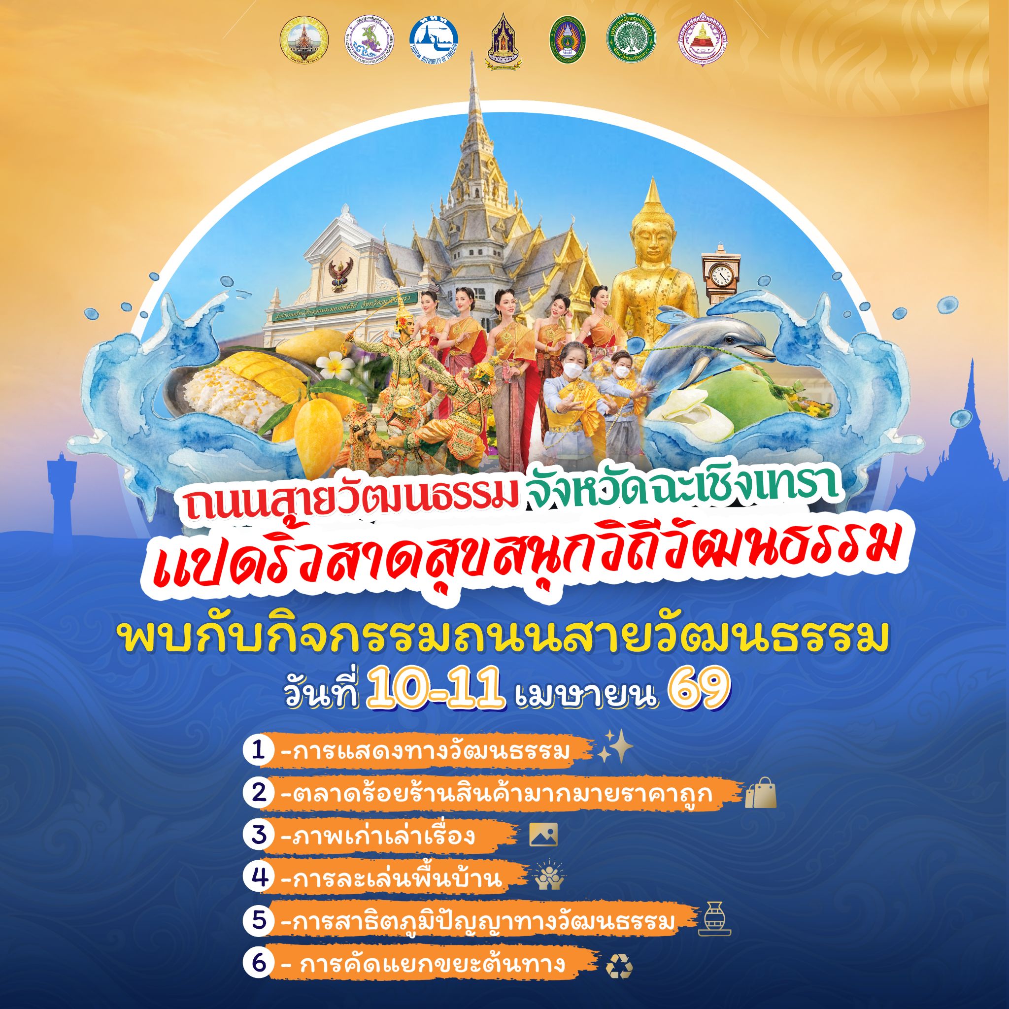 ขอเชิญเที่ยวงานถนนสายวัฒนธรรมจังหวัดฉะเชิงเทรา วันที่ 10-11 เมษายน 2569