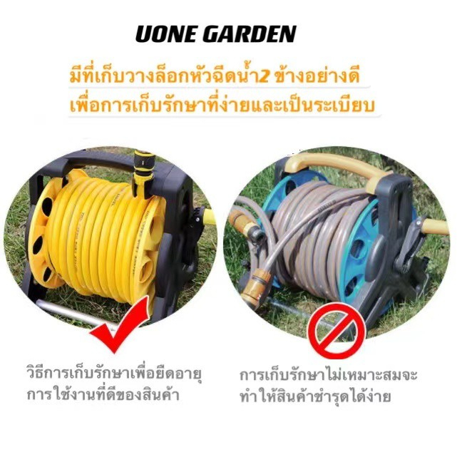 ถ้ากำลังมองหาอุปกรณ์รดน้ำที่ใช้งานง่ายและเก็บเป็นระเบียบ รุ่นนี้ของ Uone Garden น่าสนใจมาก เพราะเป็น สายยางรดน้ำต้นไม้ พร้อมโรล ที่ให้สายยางหลักยาว 20 เมตร มีสายต่อตัววงล้อ 10 เมตร และหัวฉีดปรับน้ำได้ 10 แบบ ใช้กับก๊อกสนาม 4 หุนได้พอดี จุดที่เด่นคือโรลตั้งพื้นช่วยให้หมุนเก็บสายได้เรียบร้อย ลดปัญหาสายหักงอหรือพันกัน เหมาะทั้งรดต้นไม้ ล้างรถ และฉีดทำความสะอาดรอบบ้าน 🚿