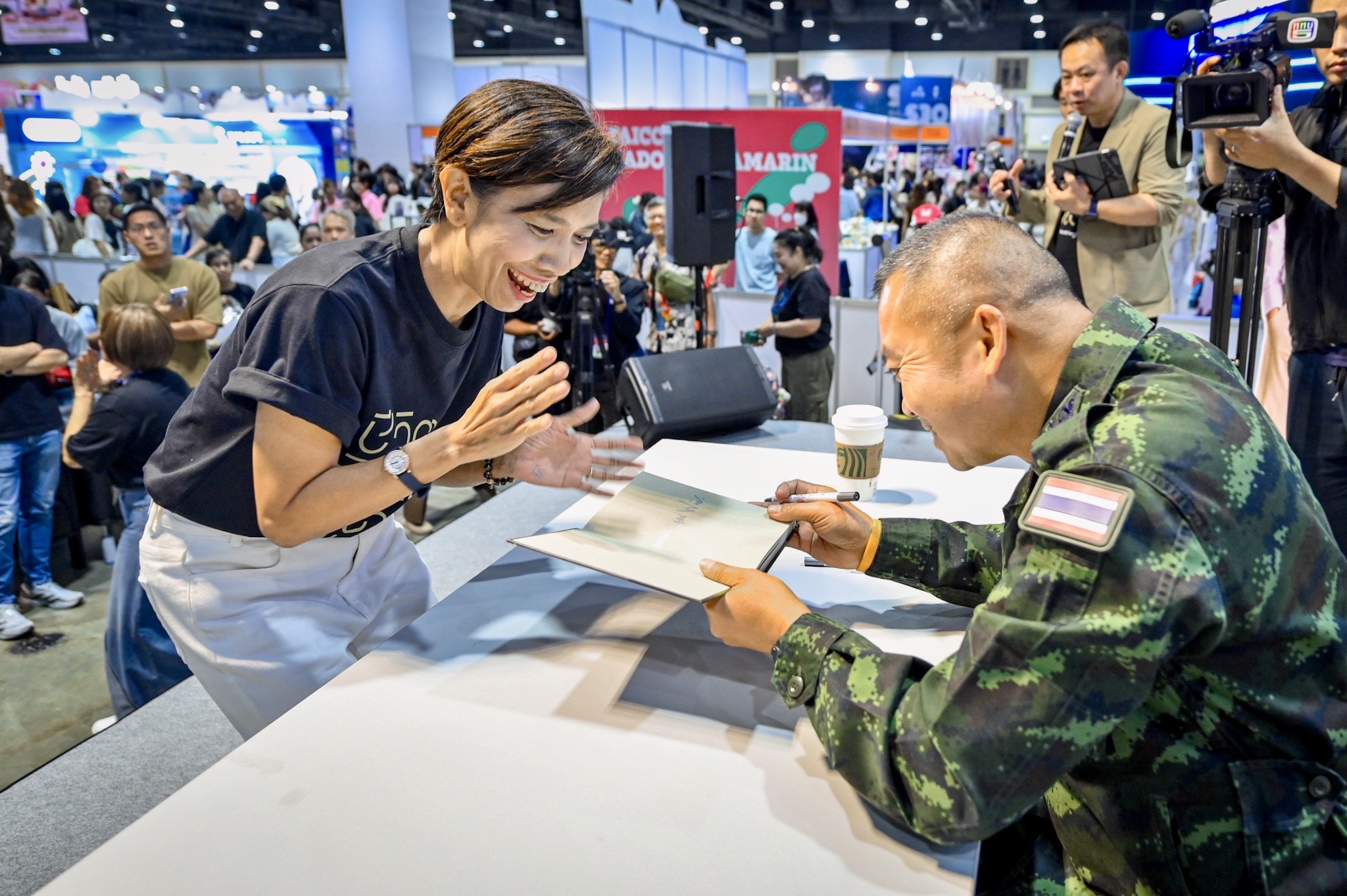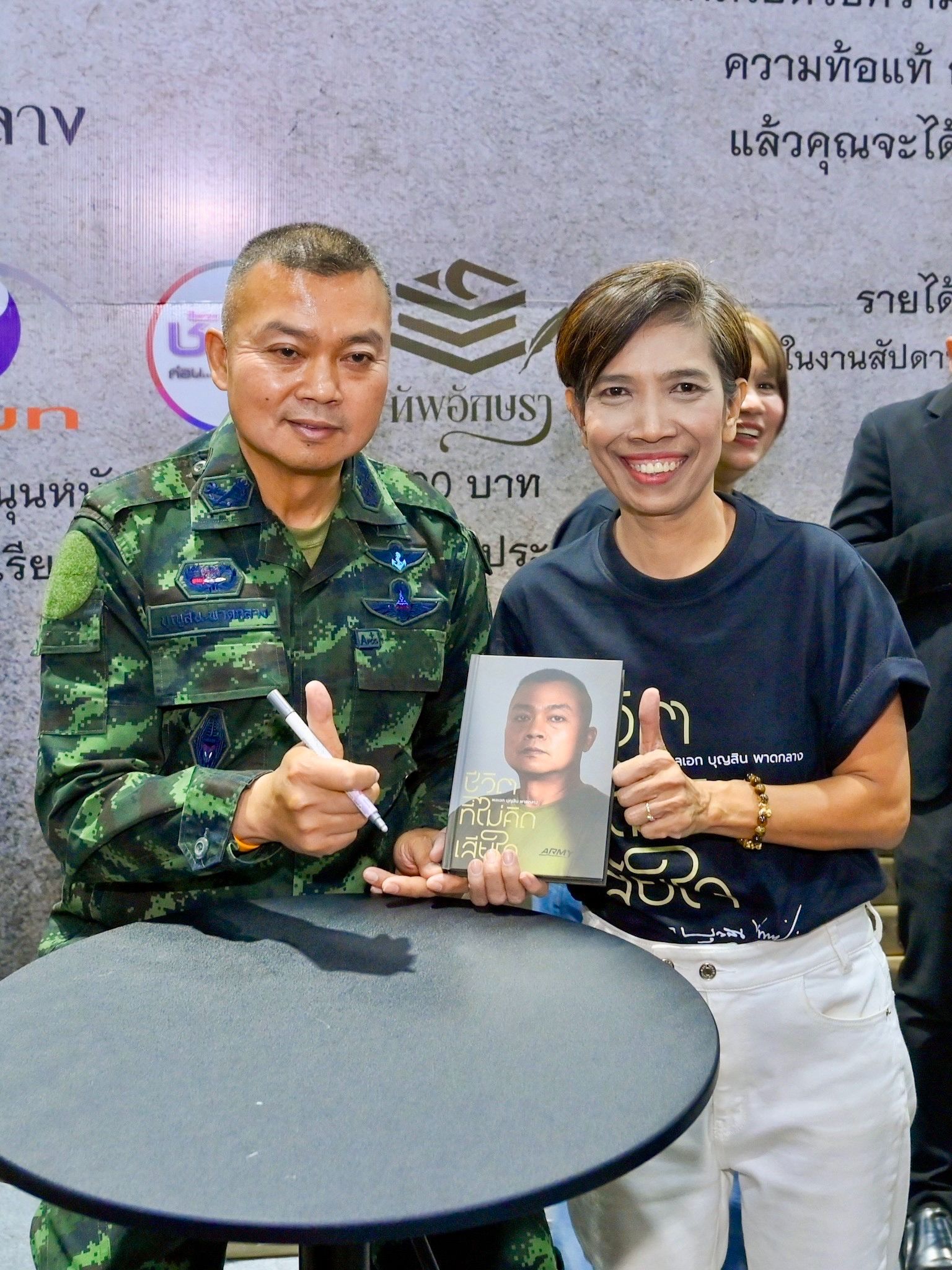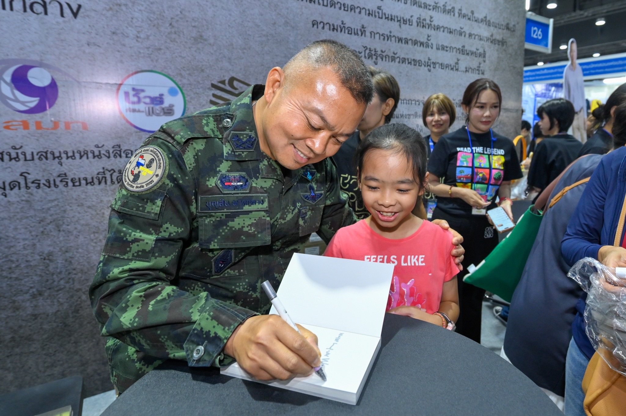 หนึ่งในไฮไลต์สำคัญของงานอยู่ที่บูทสำนักพิมพ์ทัพอักษรา (I26) ซึ่งมีแฟนคลับจำนวนมากเข้าร่วมกิจกรรมเปิดตัวหนังสือ “ชีวิตที่ไม่คิดเสียใจ” ผลงานเล่มแรกของ “พลเอก บุญสิน พาดกลาง” หรือ “แม่ทัพกุ้ง” ที่ถ่ายทอดประสบการณ์ชีวิต มุมมองความคิด และบทเรียนแห่งความมุ่งมั่นของผู้นำทหารไทยอย่างเข้มข้น โดยมีผู้อ่านต่อคิวขอลายเซ็นและร่วมพบปะอย่างล้นหลาม สร้างบรรยากาศอบอุ่นและคึกคักตลอดทั้งวัน