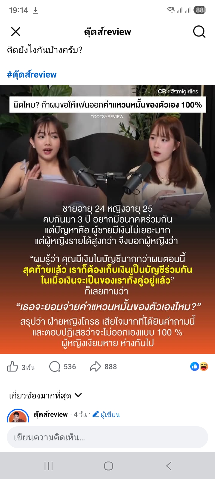 แต่เราไม่ได้ว่าส่วนมากคิดแบบนี้เพราะ ในเมนต์ส่วนมากก้อไม่ได้