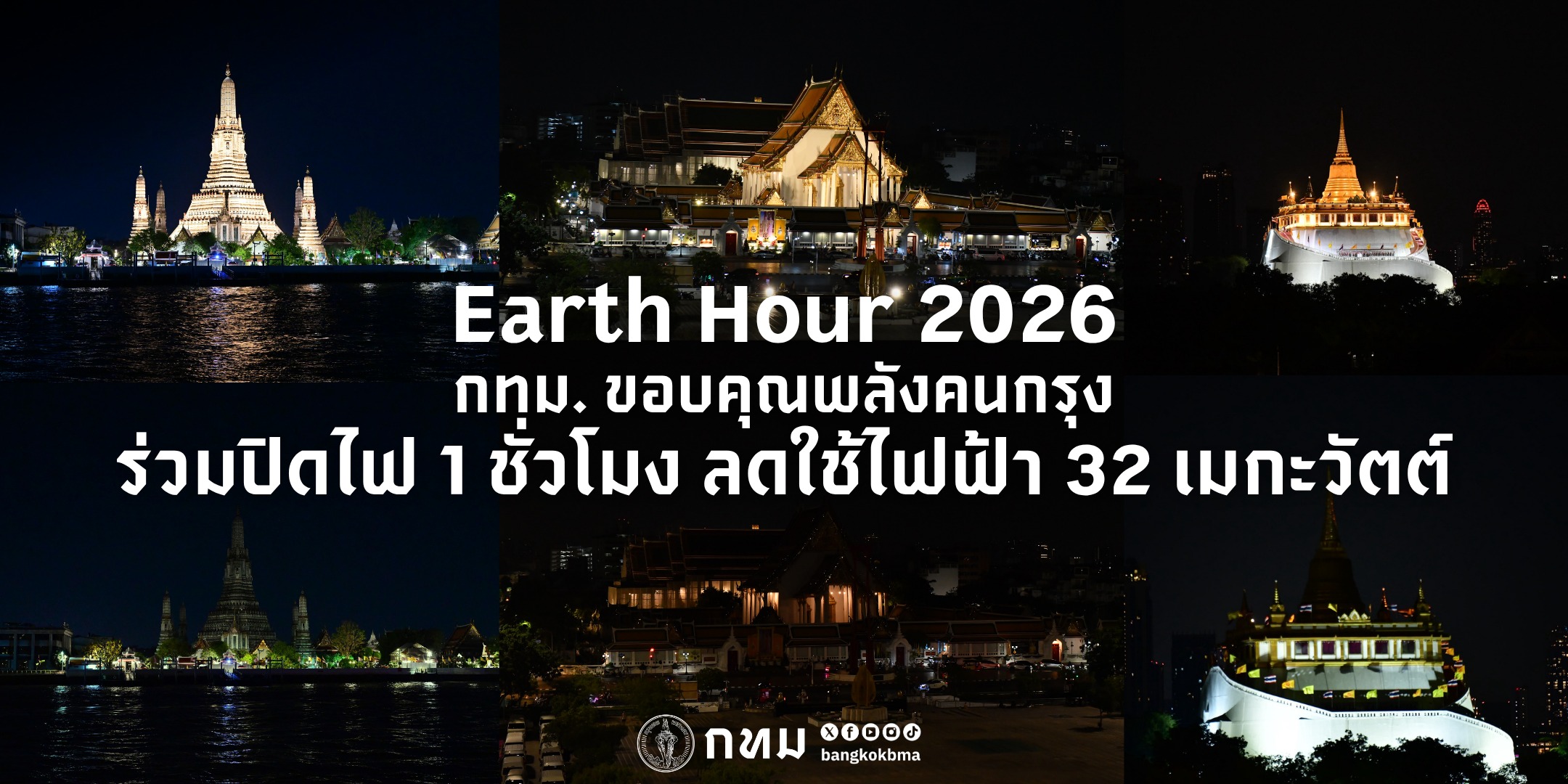 🌍💡 Earth Hour 2026 กทม. ขอบคุณพลังคนกรุง ร่วมปิดไฟ 1 ชั่วโมง ลดใช้ไฟฟ้า 32 เมกะวัตต์