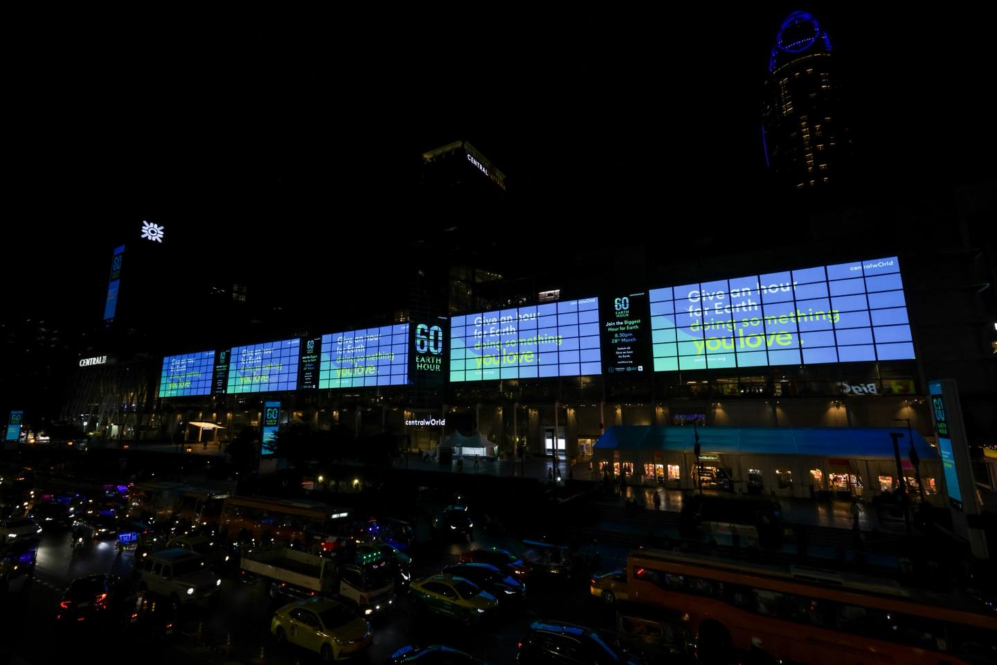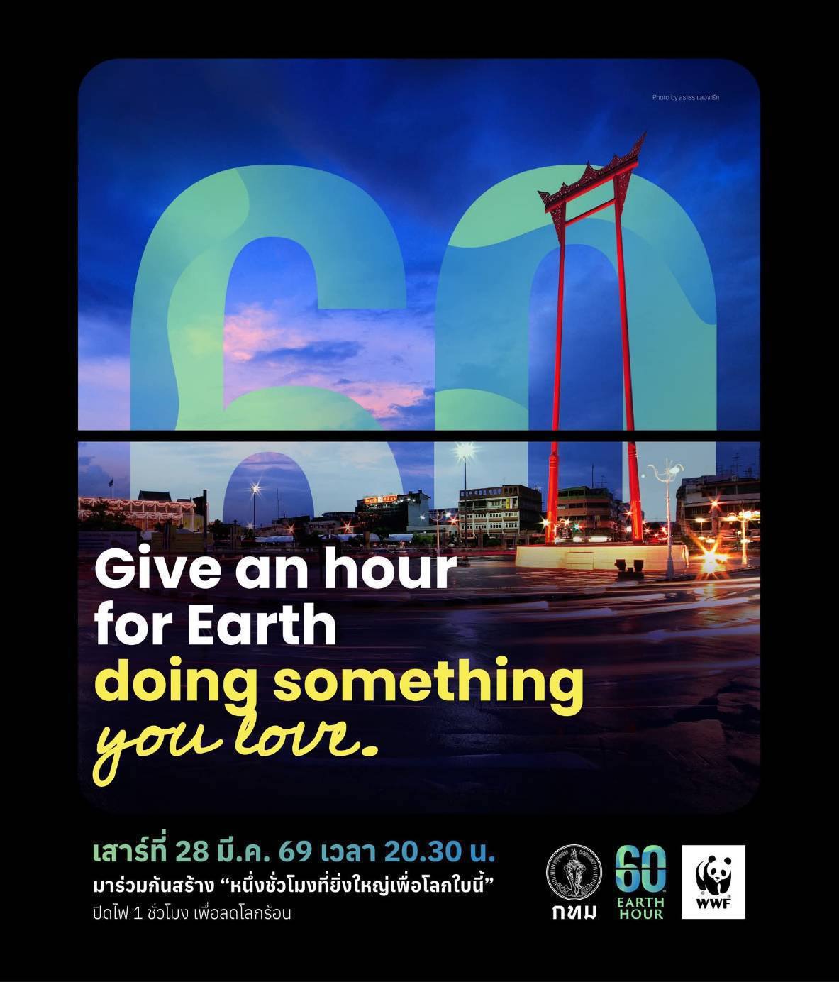เป็นเวลา 1 ชั่วโมง พร้อมกับเมืองต่าง ๆ กว่า 7,000 เมือง 190 ประเทศทั่วโลก ในวันเสาร์ที่ 28 มีนาคม 2569 ตั้งแต่เวลา 20.30 – 21.30 น. สำหรับในปีนี้ 3 แลนด์มาร์กของกรุงเทพมหานคร ได้แก่ 1. วัดอรุณราชวรารามราชวรมหาวิหาร เขตบางกอกใหญ่ 2. เสาชิงช้าและวัดสุทัศนเทพวรารามราชวรมหาวิหาร เขตพระนคร และ 3. ภูเขาทอง (วัดสระเกศราชวรมหาวิหาร) เขตป้อมปราบศัตรูพ่าย ร่วมปิดไฟเชิงสัญลักษณ์ด้วย