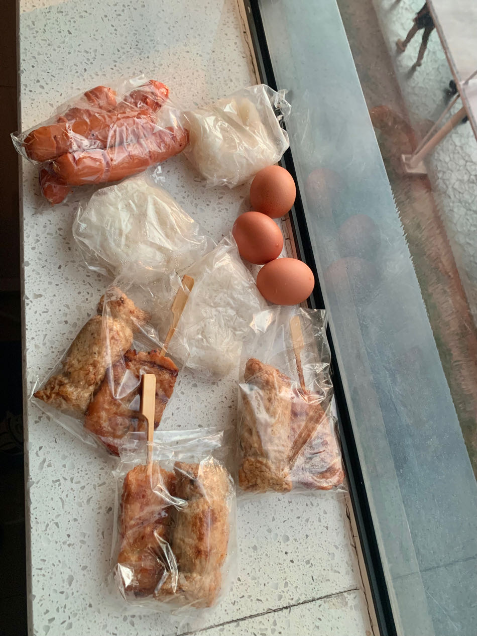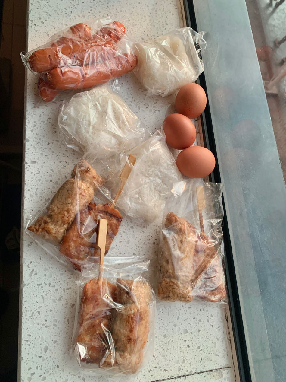 1 ชุด มีข้าวเหนียว, แหนมปากรายทอด, หมูปิ้งนมสด, ไข่ไก่ต้ม มี 3 คน