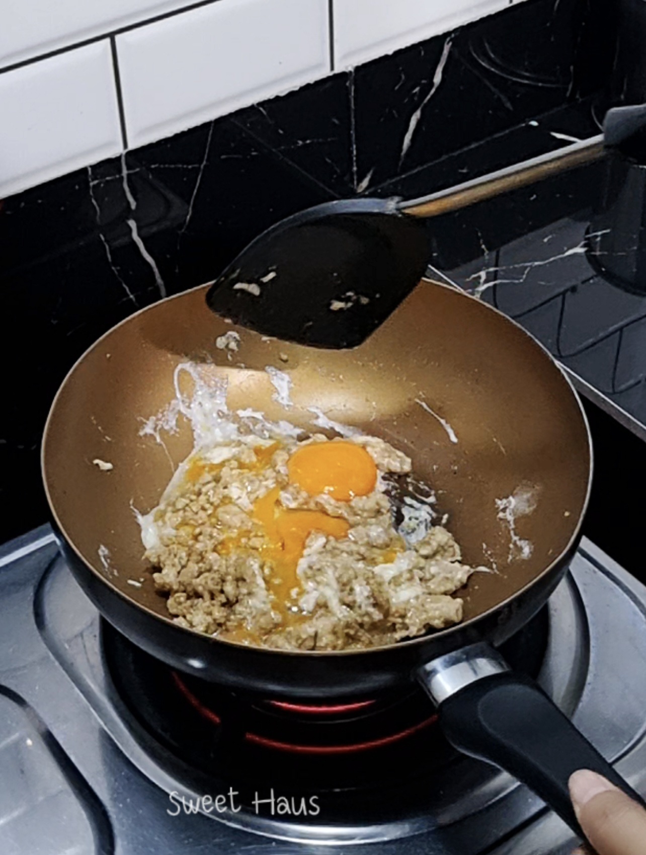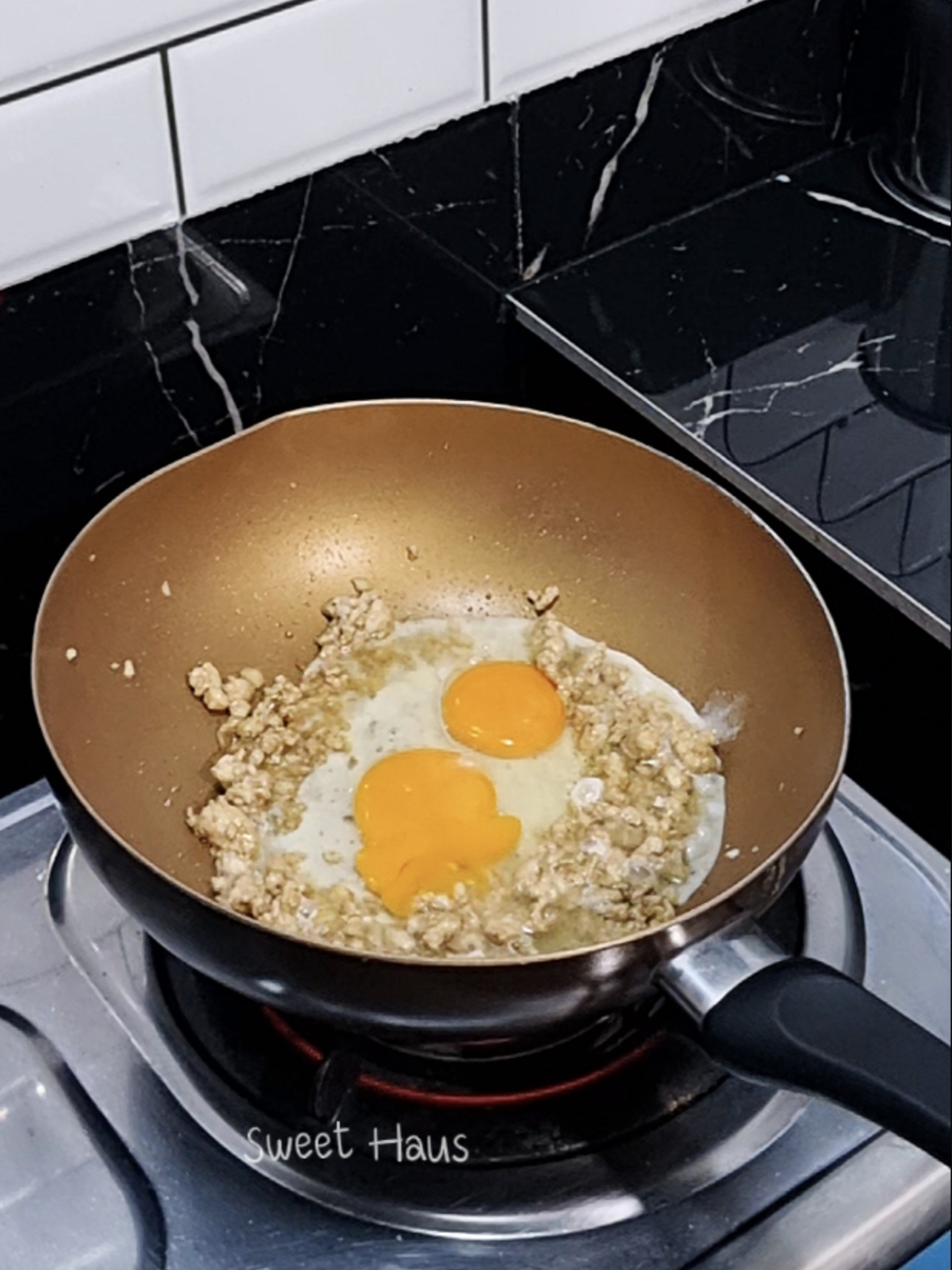 ตอกไข่ลงไป คนเบาๆ โรยพริกไทยหน่อย ก็อร่อยได้ง่ายๆ