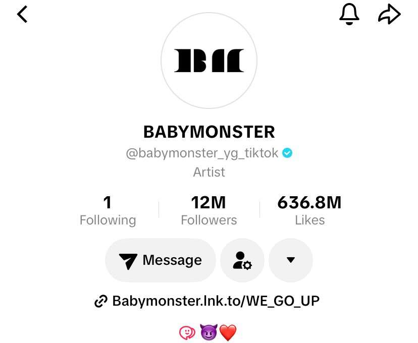 BABYMONSTER มียอดผู้ติดตามทะลุ 11 ล้านคนบน TikTok เป็นที่เรียบร้อย และมียอดผู้ติดตามสูงเป็นอันดับ 1 ของเคป๊อปเจน 5 รวมชายหญิงทั้งหมด นับถึงขณะนี้ยังไม่มีไอดอลเ