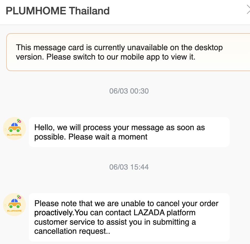 Lazada สั่งของจากลาซาด้า ร้าน Lazmall มา 2 เดือนกว่า แต่ผู้ขายไม่ส่ง ยกเลิกก็ไม่ได้ ติดต่อไปก็แต่บอท ทำไงดีครับ