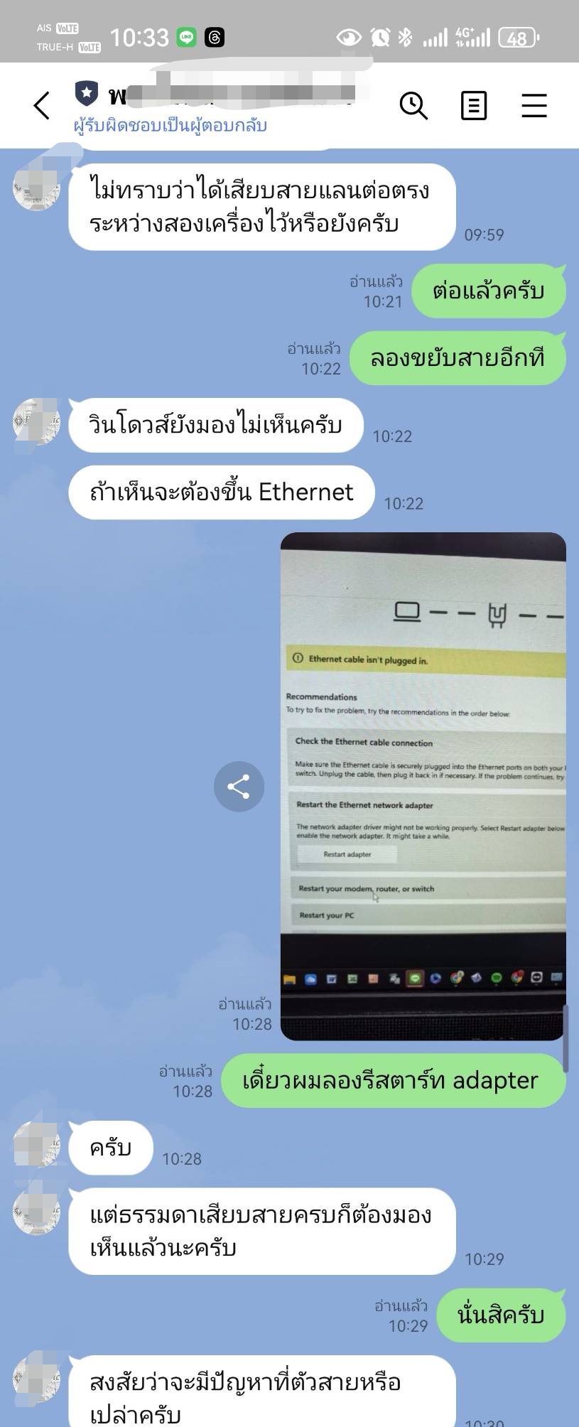 ผมเลือกวิธี1 คนขายก็เข้ามารีโมทตั้งค่าip แต่แปลกใจทำไมคอมพิวเตอร์ไม่เจอ ethernet