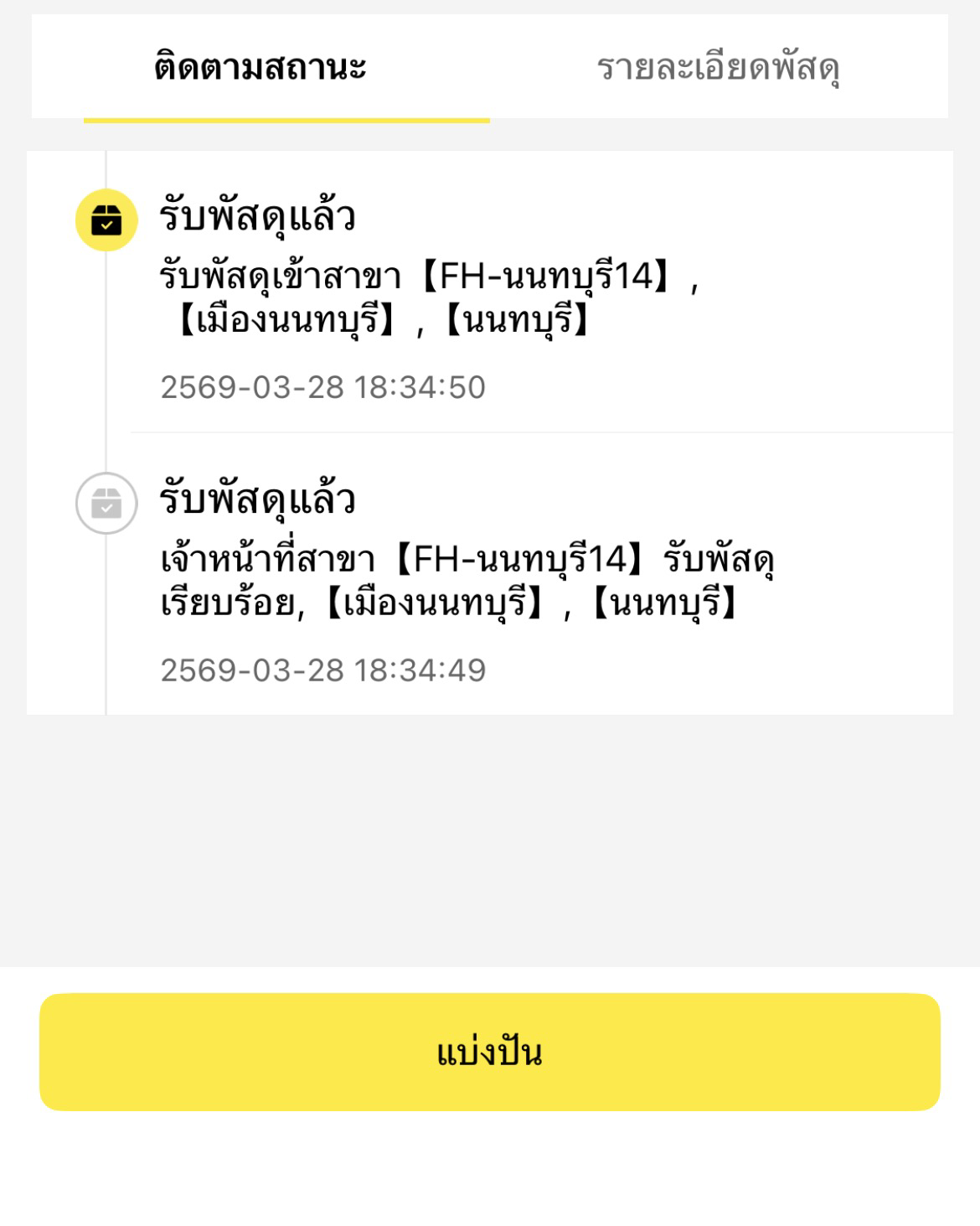 ส่งของไปเมื่อวาน (วันเสาร์) ช่วงเย็น ทำไมไม่มีอัพเดตสถานะการจัดส่งอีกเลยครับ? เเบบเงียบหายไปเลย