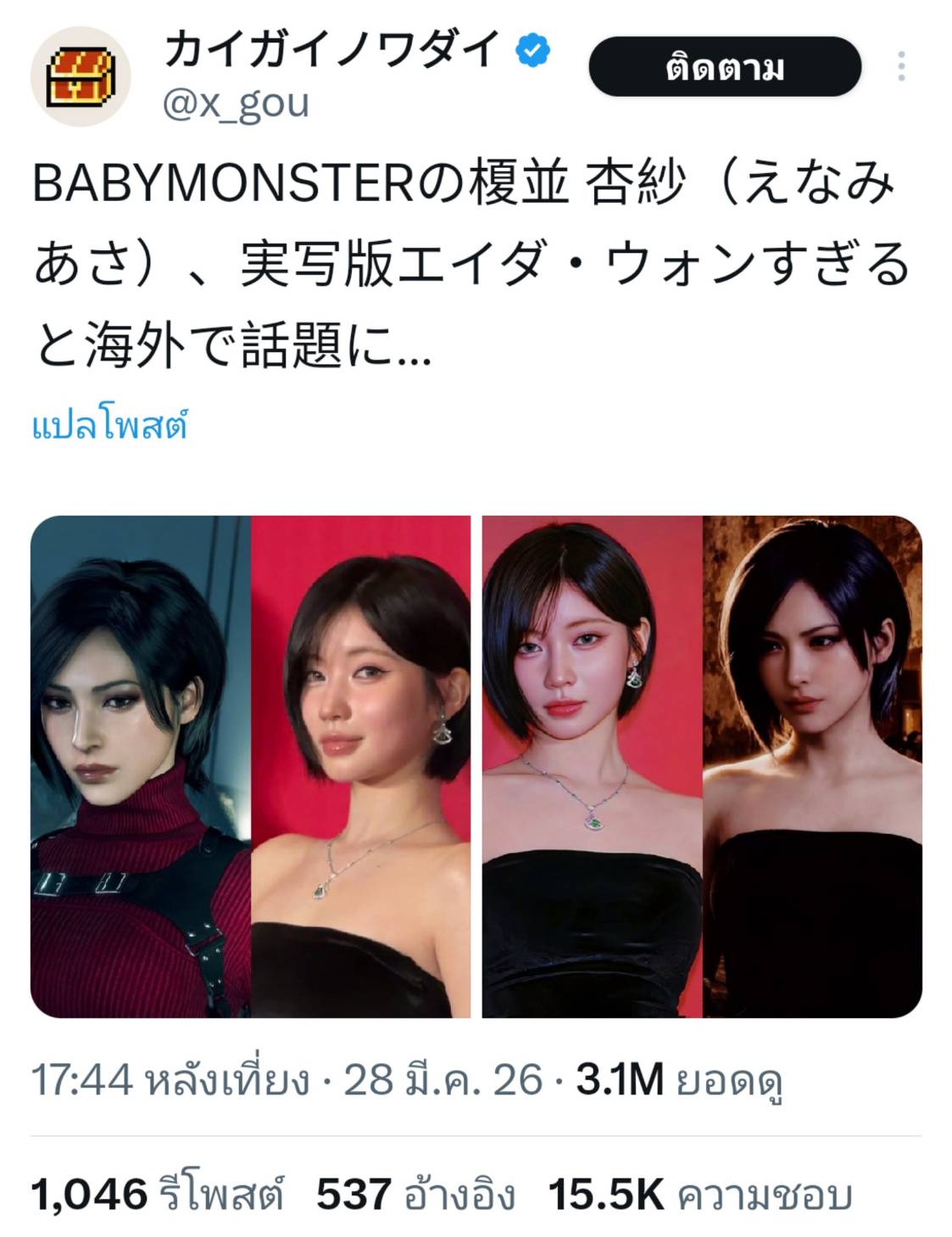 ASA BABYMONSTER กำลังเป็นไวรัลอย่างหนักในโลกโซเชียลว่าบุคลิกลักษณะและหน้าตาคล้าย Ada Wong จากเกมฮิต Resident Evil